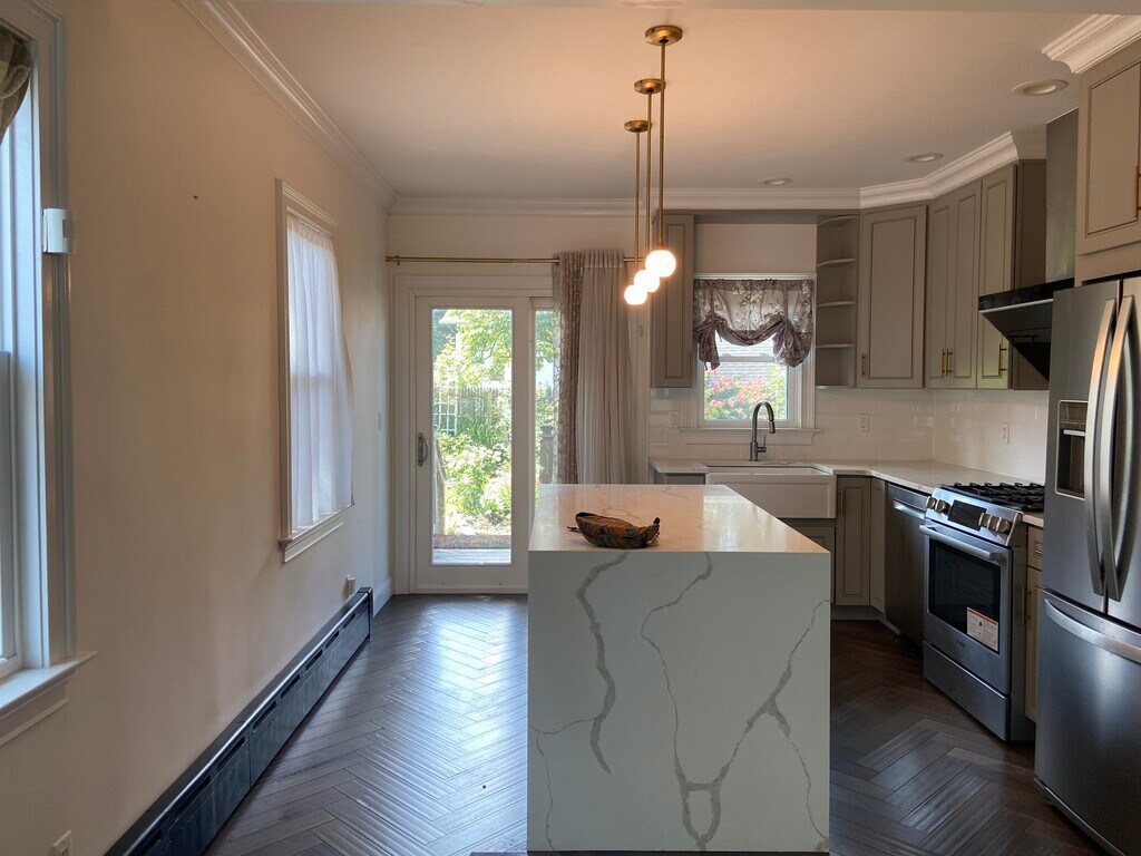 perfectly located in the heart of Bayside: 5-min walk to LIRR station, 3-min walk to Bell Blvd, quiet and charming residential street. Luxuriously fully renovated in 2020: New brand kitchen, Sunshine throughout the day, Solar panels .3 bed, 2 bath, appx int 1,500 sf, finished basement, open floor plan, hardwood floors throughout. Beautiful front and back garden. Fully fenced-in backyard. Long driveway parking. Easy access to shopping, parks, schools and buses. 30-min LIRR ride to NYC.