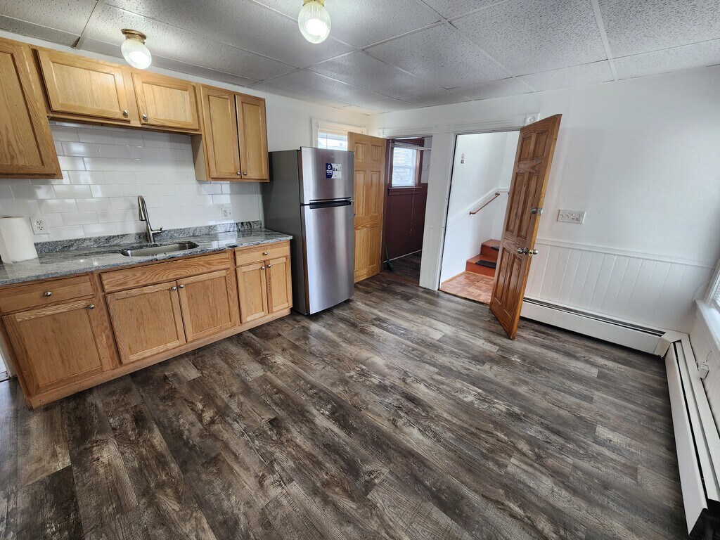 This is a second floor apartment found minutes away from the new Pawtucket train station. It comes with newer kitchen cabinets, stainless steel appliances, a granite countertop, and newer floors. In addition, there is a private entrance off of the living room. In the basement, there are coin-operated laundry machines as well as a personal storage unit. There is also off-street parking available and security cameras that monitor the area around the property. This is a one year lease. Requirements include having an income of at least 3x the rent, credit score(s) of 650+, and no prior evictions, misdemeanors, or felonies. First month, last month, and security deposit required to move in.
