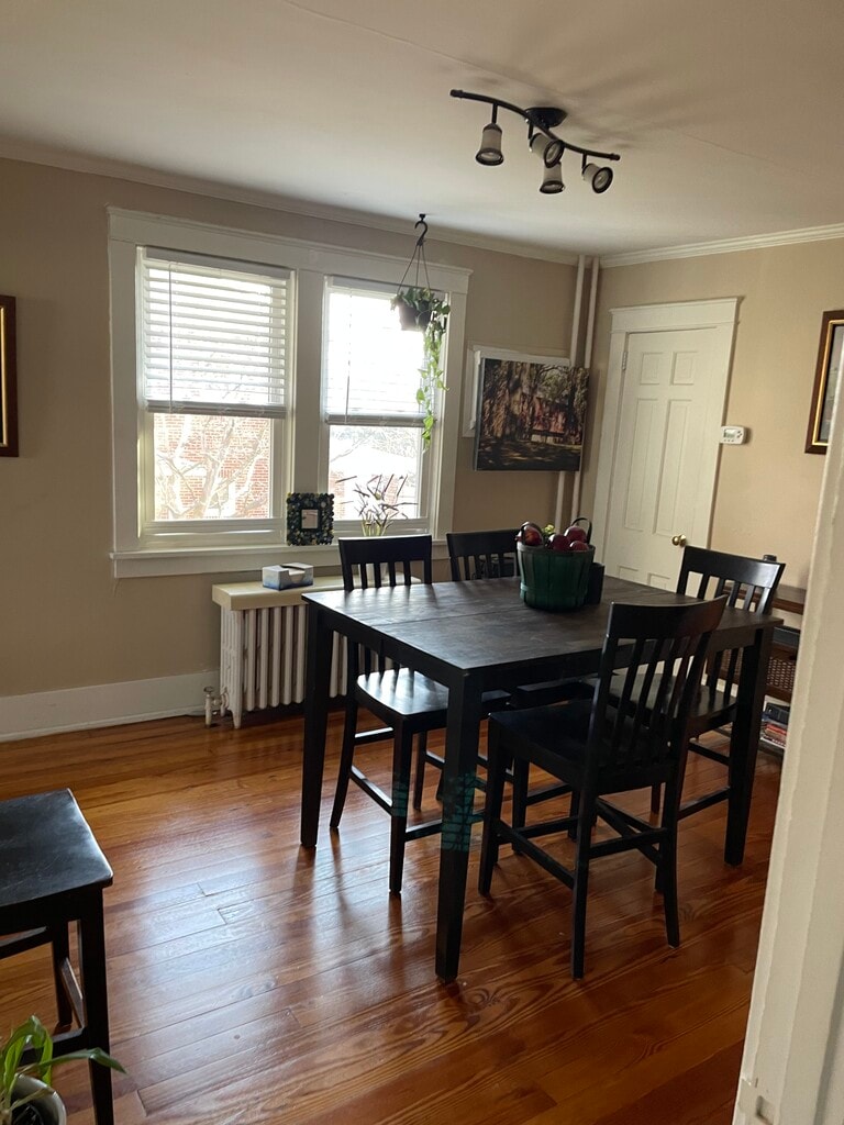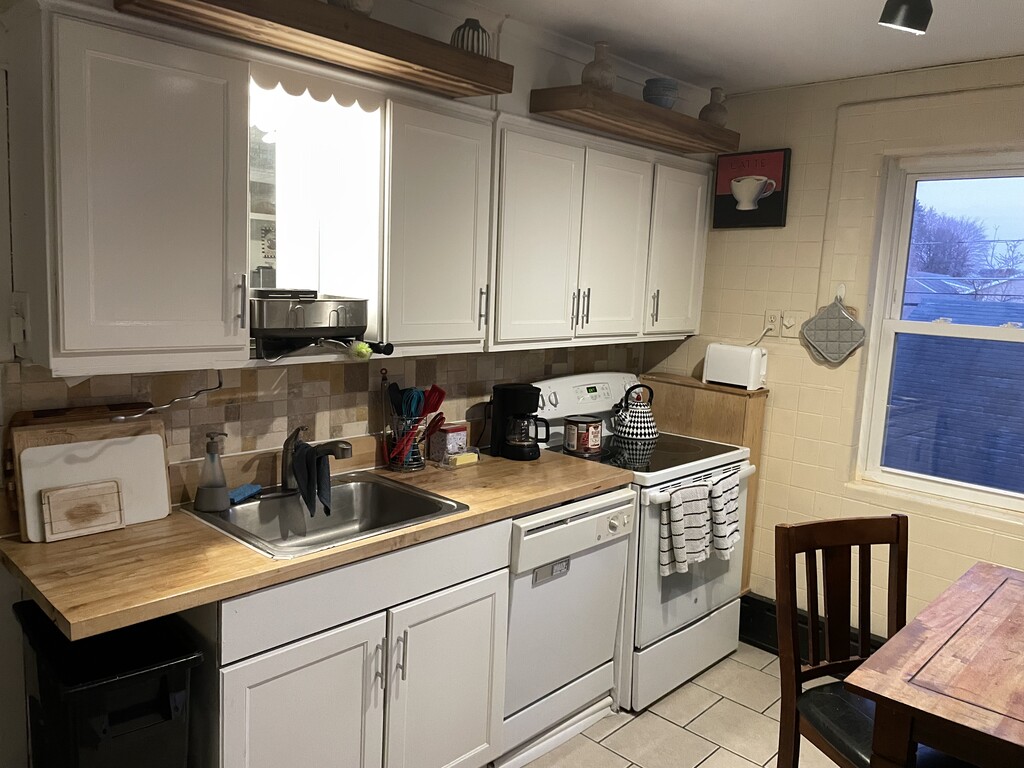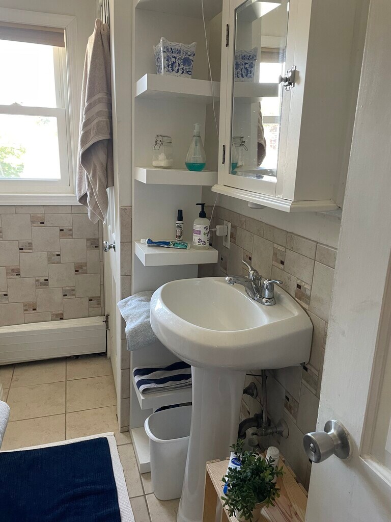 Seperate one bedroom apartment on the first floor. Rented to the same tenant for 3 years older women very quiet. ———————————— Details: -living room, dining room, kitchen bathroom on the second floor -two small bedrooms on the third floor plus a very small tiny office This is a an apartment with a lot of character and very quiet bedrooms you can’t hear a peep. The living room is 14 x 14 with a fake fireplace and windows on two walls to allow a cross breeze on cooler days. The laundry area is off to the side, The dining room is 13 x 13 with a double window overlooking the yard. The kitchen is small and kind of outdated, but its an old house if you’re looking for a modern kitchen this is not your place although it does have a brand new dishwasher a nice sink, stove and range, the refrigerator is on the small side also. Tile floor, nice backsplash and small butcher block countertop. The bathroom is tiled recently and has a brand new sink. The bathtub is also in great shape. Also there’s a big closet in the bathroom and a medicine cabinet. Fan and vent. The upstairs bedrooms are both small with a standard 8 foot ceiling in the smaller room that is 10 x 10 and it’s going to have fresh brand new carpet The bigger bedroom has a L shaped design and slanted roof. It’s the coziest room in the apartment. It has two different areas where there are windows. I’d say that room is probably hard to say what the exact measurements are but probably 12 x 12 altogether. There is attic space for storage and a small office also on the third floor. I used the small room as an office with a desk and a chair for years. It is3’x7’. It has a window so it feels bigger. The biggest downside to this apartment is that the bathroom is on the second floor and the bedrooms are on the third floor so if you get up to go to the bathroom a lot at night, it’s not for you! The picture don’t show the renovations that are underway. The second floor is being repainted it already has really nice hardwood floors. The two staircases are also getting new carpet and the entire bedroom floor (3rd floor). Ideal apartment for a couple with one elementary school age child. Walk to school at one of the best Elementary schools anywhere. Off street parking on the front on Broadway. Nice yard that will be kept looking great! 15x15 deck for your use behind the house. First floor Tennant does not get this. It’s yours! She has a front porch. Snow removal of the sidewalks is included for 4 storms. You decide if you will handle the smaller shovels or safe for the bigger storms. No storage in the basement Heat included. 4 wall AC’s plus 2 window AC’s. It possible to keep the place cool on the hottest days. Electric is expensive on the summer. $150. Trash to the curb every Thursday night is your responsibility. Also the cans must be off the street by 9 the next morning to insure mail delivery. Holiday’s move pickup back on day. Cans out on Friday instead.