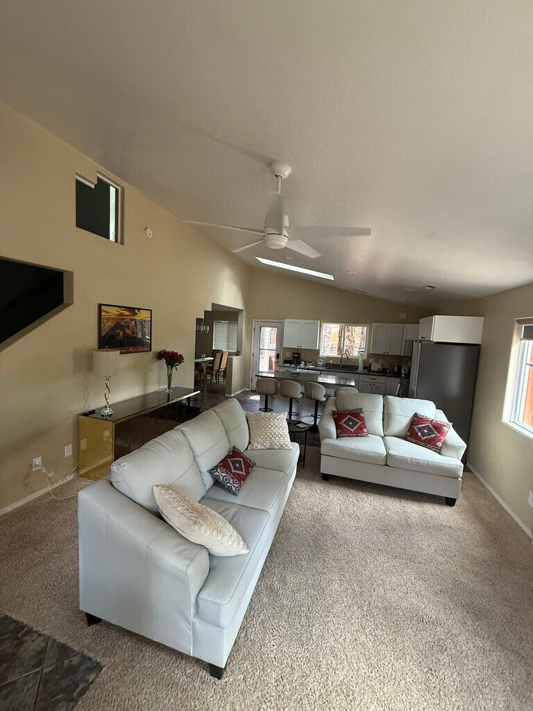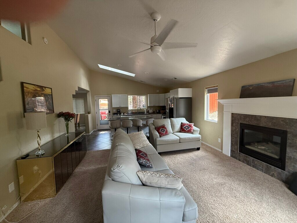 This spacious home is available January 1st for a 5 month lease, through May 31,2026. It is fully furnished with vaulted ceiling, an open floorplan and kitchen with newer appliances and counter seating. It has a separate dining room, a laundry room with brand new washer and dryer and a big two-car garage. Good sized bedrooms, with the master with ensuite bath downstairs and 3 more upstairs. It features a gas fireplace and a nice backyard with a furnished patio. The large back yard is fenced and ideal for a dog. We have priced this right to find the right tenants who will take care since it is our summer home. 5 Minutes from NAU and close to all Flagstaff has to offer. It is located in one of the best neighborhoods in Flagstaff, a 5 minute walk from Ponderosa Trails Park and right on the Flagstaff Trail System. Rent of $2480 per month includes high speed internet and electric. Tenant covers gas and water. References, excellent credit or qualified co-signer required. $750.00 security deposit. Available for showing by appointment. Contact Glenn Six zero 2 Nine zero 8 one two 48