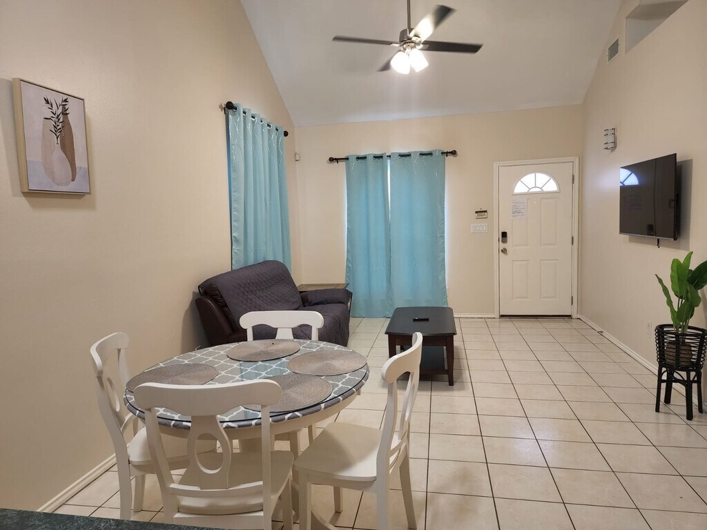 Este lugar es en excelentes condiciones, muy techo alto, muy diseño funcional y espaciosos, 2 camas 2 baños la mitad de un dúplex está en una tranquila y pacífica zona, a solo una cuadra de BL Garza escuela secundaria. Este lugar está ubicado en una excelente ubicación, a 5 minutos en coche de la Universidad de Texas Rio Grange Valley, todos los centros de compras, restaurantes y hospitales, Hidalgo County Courthouse y a solo 9mi el nuevo campus de Texas A&M. El alquiler es de 900 no incluye muebles, tú paga tu propia electricidad, WI-FI, El alquiler con muebles es de 1000 un mes, tú paga tu propia electricidad, WI-FI. También está ubicado completamente amueblados con 1 cama King Size, 1 cama Queen Size, Total de 2 camas, la cena de mesa, bienes sofá de cuero, nuevo televisor inteligente, nueva lavadora y secadora, ropa de cama y almohadas, utensilios de cocina, ollas y sartenes... Se admiten pero depósito por daños por mascota y una cargo por mascota de raza.