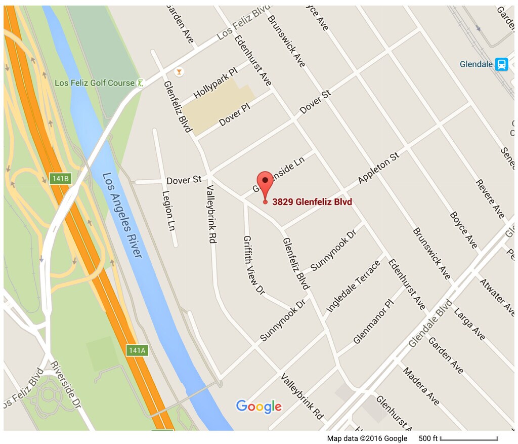 Está localizado en el barrio Atwater Village, 3829 Glenfeliz Boulevard en el código postal 90039 de Los Angeles, CA.
