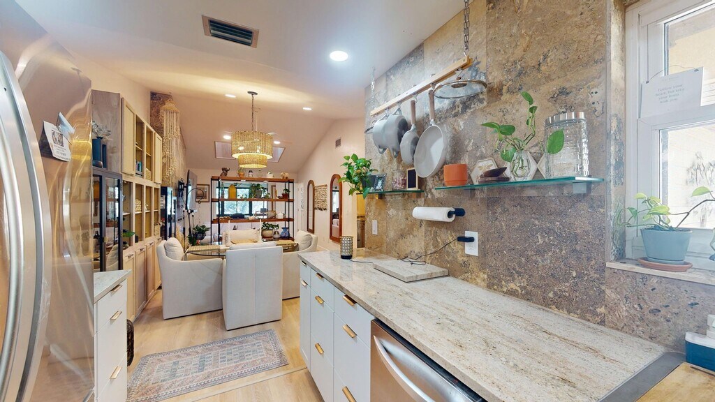 Both bathrooms and kitchen are new and clean. LVP throughout condo. Carpet in sunroom. Peaceful view in sunroom with HVAC. Top of the line appliances and marble counter top. Very nice area. Association pool and courts are included plus car port and additional parking close to entrance. 2nd floor unit with vaulted ceiling and travertine electric fireplace. Unit is currently occupied. Call or email with questions