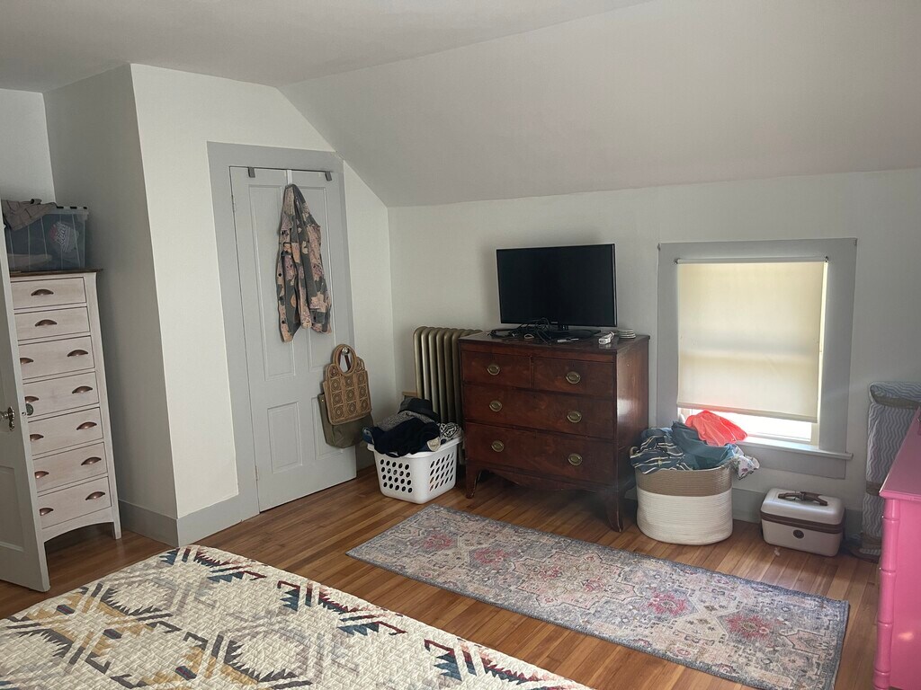 All Inclusive Day Avenue Co-Living Come live near downtown Northampton in a social living environment within a charming old (yet newly insulated!) late Victorian house, all souped up for co-living! The house has 4 (unfurnished*) bedrooms, a community room, a flex room, a new kitchen, and nice front porch. Walk/bike to Downtown - One block from major bus stop – One block to the Bike Path (super close to the pedestrian bridge over the Connecticut River...) Home features a brand new and equipped kitchen with white shaker-style cabinets, stainless steel Energy Star appliances, black granite countertops and an eat-in peninsula, as well as a newly renovated bathroom. (An additional new bathroom is being added as well, completion date TBD). Furnished common living/dining room and flex room. This well-maintained home has lots of nice original and added details, high ceilings, hardwood floors, and a nice front porch and front yard area (that tenants can use and garden in if they wish). Recently refinished upstairs hardwood floors, newly painted walls, trim and doors, new upstairs stacked washer/dryer, and basement storage for each tenant. Rent is All Inclusive – Includes internet (300 mpbs), heat and water, as well as laundry, trash, recycling and compost collection (by the Pedal People!), snow removal and yard care and cleaning of common areas. 6-Month Lease, then 2-Month Leases. However, other / flexible lease terms may be considered – Please inquire if interested. The Location: The location is ideal for accessing everything, including downtown, the bike path, the highway, and the Route 9 bus routes. Conveniently located less than a block from the Route 9 bus stop at Sheldon Field Park, on the B43 and many other bus routes. One block from the bike path. Short walk to the pedestrian bridge over the Connecticut River. 7 minute walk to the start of downtown Northampton, 20 minute walk to Smith College. The Details: The all-inclusive rent is $1,650 per month. A $200/month credit is offered to tenants who are interested in wiping kitchen and bathroom surfaces with a sanitizer twice a week (note: all kitchen and bathroom surfaces are cleaned daily) – ask for details if interested. Social and cooperative living are strongly encouraged. A Living Agreement between tenants outlines shared rules, responsibilities and expectations among residents. Each individual room has its own lock, and you can select your entry code (which will also be your house entry code). A small dog may be considered. More Details (i.e. The Fine Print): The back unit of this house, as well as the backlot, is presently under construction. The new houses at the back will be completed over the next several months. Therefore, at this time, only street parking is available, and bicycles may be stored on the covered front porch, the basement or other designated areas. Once the site construction is complete, parking spaces will be available for rent, and additional bicycle parking will be available. The unit is presently being turned over (bathroom renovation, etc.) and furnished, but a virtual walk-through is available (contact us) and an in-person walk through can be scheduled toward the end of March. Rooms available starting May 1st. Individual rooms are unfurnished, but if interested we can discuss providing a bed frame (with headboard) as well as a dresser. Please note that the pictures aren’t quite up to date. They will be replaced shortly with a better set. (The living room wallpaper is being removed, and the walls will be painted.)