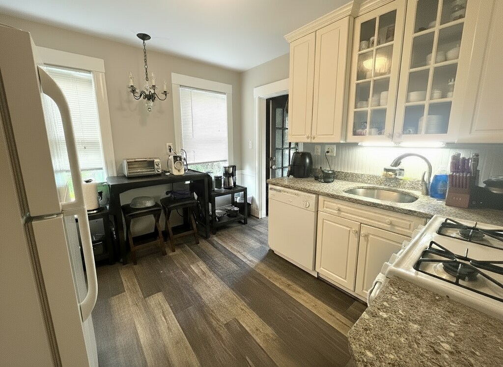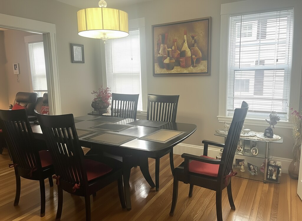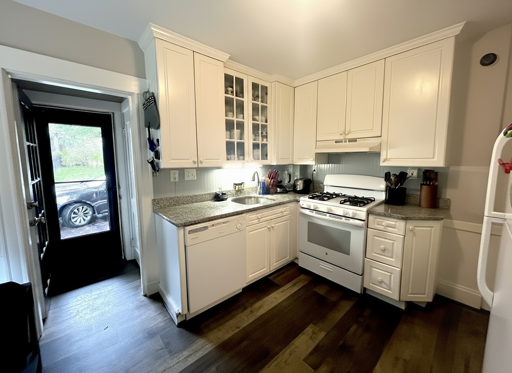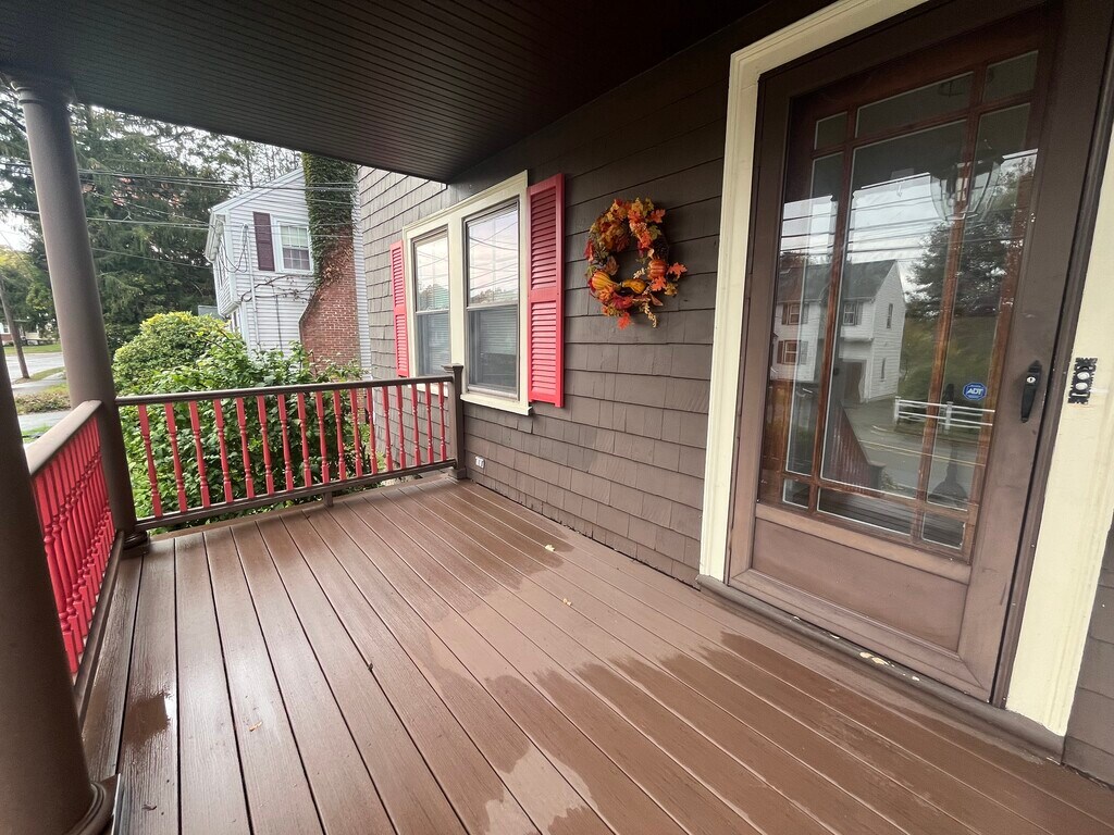 This apartment won't last long. Beautifully maintained home located on the West Side, close to downtown shops, restaurants and commuter rail. This spacious 2 bedroom first floor unit will be available for December 1st. This beautiful unit boasts hardwoods through out, the living room opens to formal dining room, updated kitchen with quartz counters and gas cooking, has great size pantry (currently used as office area). Two bedrooms and bath finish off this unit. Central air for your comfort. You will enjoy sitting on your private back deck area and there is a common patio area for grilling. Off street parking is included. Washer and dryer hookups in the basement. All applicants to provide credit check, two months worth of paystubs and references. Credit score of 720 or above required. No pets, no smoking.