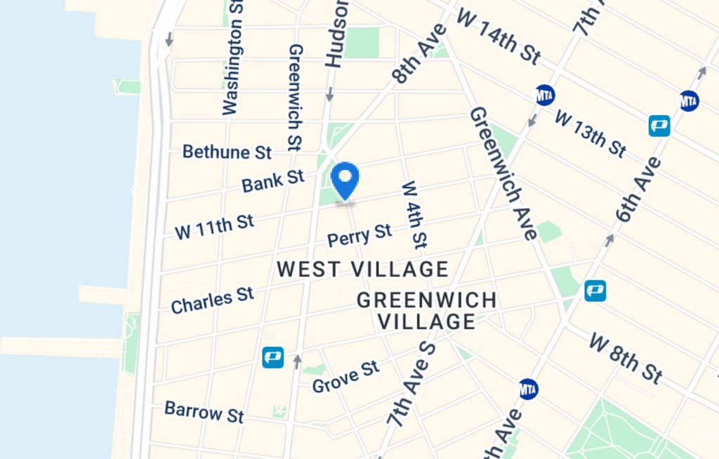 Está localizado en el barrio West Village, 395 Bleecker St en el código postal 10014 de New York, NY.