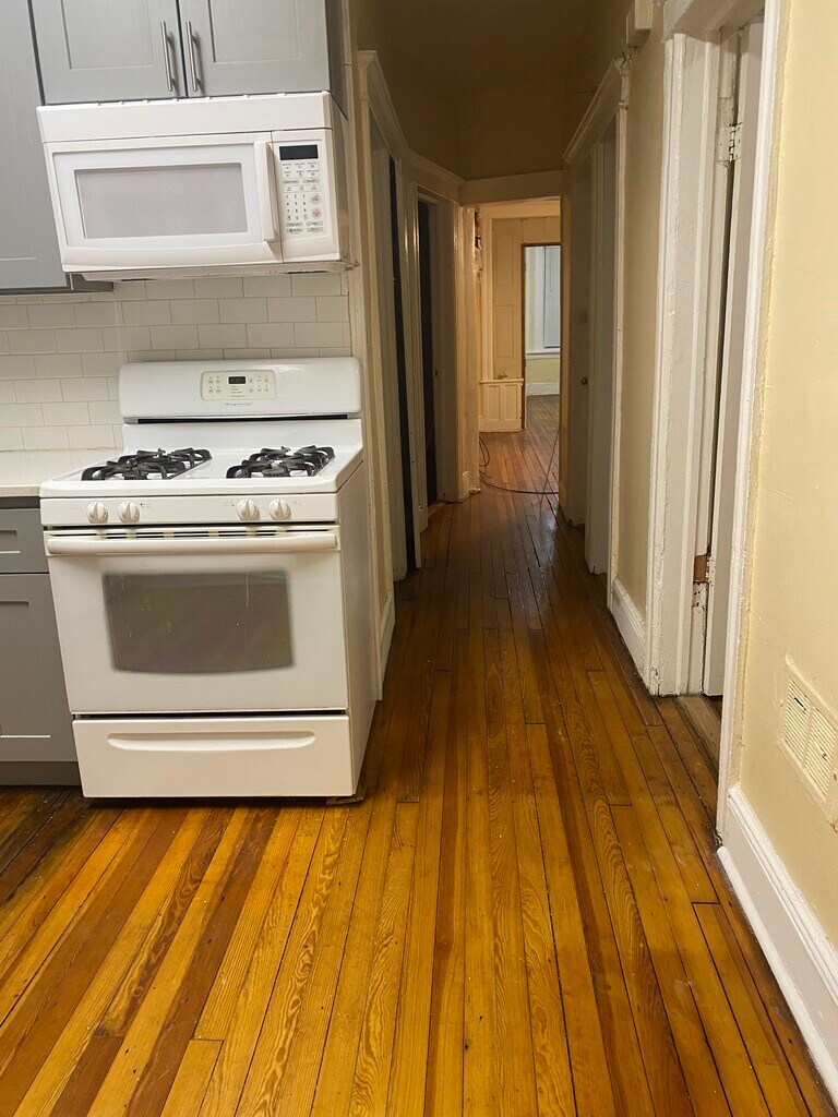 Renovated 3 bedroom, 1 bath apartment in a brownstone in historic Mcginly square. Kitchen and bathroom remodeled. Beautiful Hardwood flooring throughout. Large windows admit abundant natural light. Off street parking option potentially available. Bus stop on the corner, with a short 1 mile ride to the journal square PATH train that takes you to Manhattan. Adjacent to shops and restaurants on Monticello and Bergen avenues. house has a private backyard. apartment has a spacious eat in kitchen, living room, and pantry. no broker fee. Credit Check Required. owner pays for water. renter pays for gas and electric. no smoking.