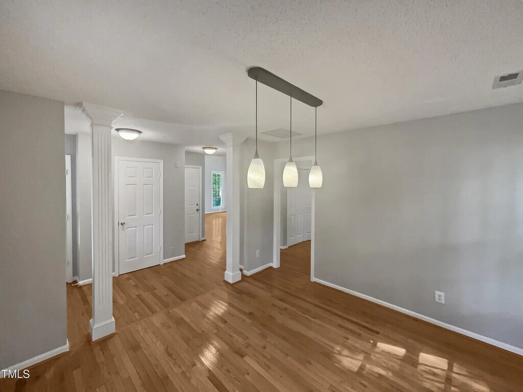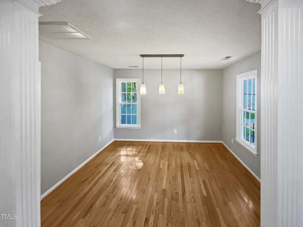 Amazing home within minutes of Duke University and Duke Hospital. Nestled in a quiet cul-de-sac near 10 miles of hiking trails in Duke Forest, this charming three-bedroom retreat offers the perfect blend of comfort and character. Sunlight pours through oversized windows into an open-concept living and dining area, where warm hardwood floors create an inviting atmosphere for relaxing evenings in. The fully equipped kitchen makes cooking a genuine pleasure. Retreat to the spacious primary suite, featuring two walk-in closets and a spa-inspired en suite bath, while two additional bedrooms offer flexible space for guests, a home office, or whatever your lifestyle demands. Enjoy a cold drink on the Southern-style front porch while taking in the view of the expansive front yard, or grill on the private patio and deck in the fenced backyard. With central air, in-unit laundry, and a two-car garage rounding out the amenities, this home offers everything you need to settle in and feel right at home from day one.