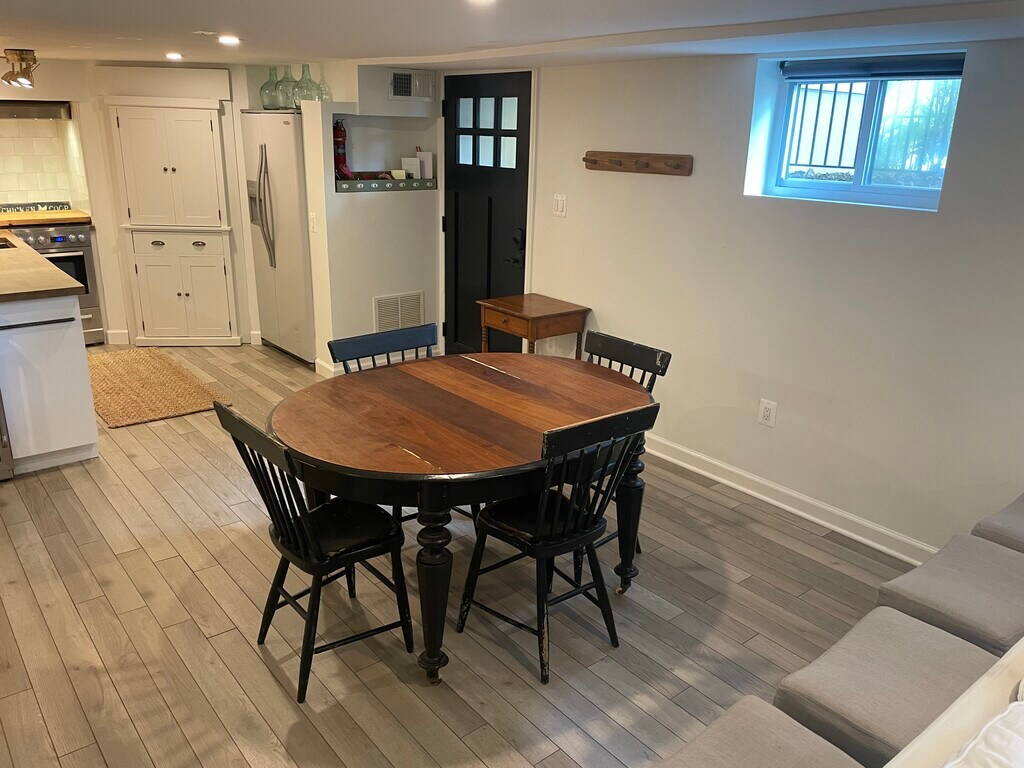 0.7 miles to nearest metro (Clarendon Metro- orange line) Monthly rent is $2,500 + $250 (all utilities, including VERY fast Wi-Fi) The ALL inclusive, and fully private. Just bring your suitcase! 990 sq ft. Fully furnished and all accoutrements for your typical stay. Basement apartment (1-bed, 1-bath) with lots of natural light, its own private entrance, and its own FULL kitchen... updated in ‘23 with bar/wine fridge and full size dishwasher. Full size (and dedicated) washer/dryer, too. Everything you need for your home away from home! 3-month minimum lease. Will consider longer, case-by-case. Pets: case by case. No cats.