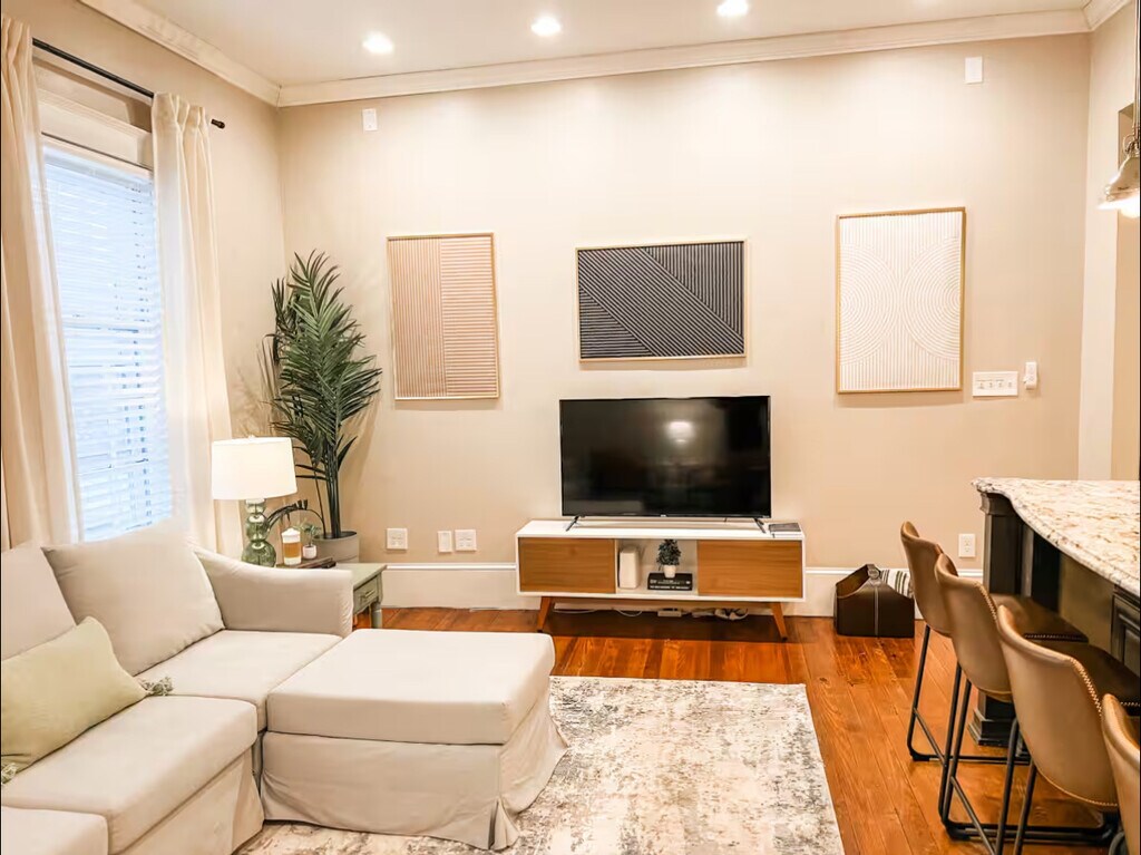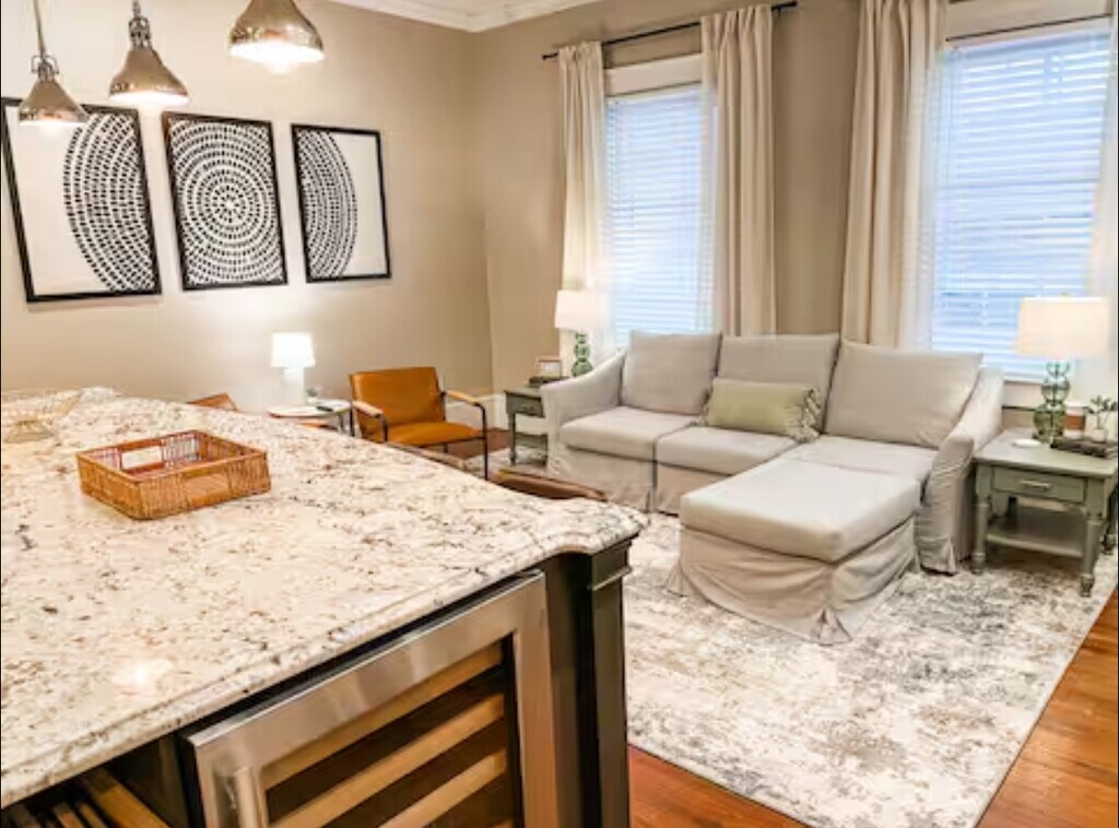 El alquiler es una encantadora casa en el histórico Oakwood, a pasos de toda la acción del centro de la ciudad. Esta casa renovada tiene tres dormitorios y dos baños completos en el piso de abajo, y un espacioso loft en el piso de arriba con espacio adicional y armario. La casa cuenta con todas las comodidades modernas nuevas, lavadora/secadora en la unidad, una cocina encantadora y una sala de estar abierta, y un patio trasero con cercas con espacio para recibir invitados en el centro de la ciudad. Ubicación, ubicación, ubicación. A 5 minutos a pie de todos los festivales, restaurantes, bares y atracciones del centro de la ciudad. Alquiler: $3,950/mes. Acuerdo de arrendamiento de 12 meses Depósito de garantía de 1 mes al firmar Los inquilinos cubren todos los servicios públicos Lavavajillas/secadoras en la unidad