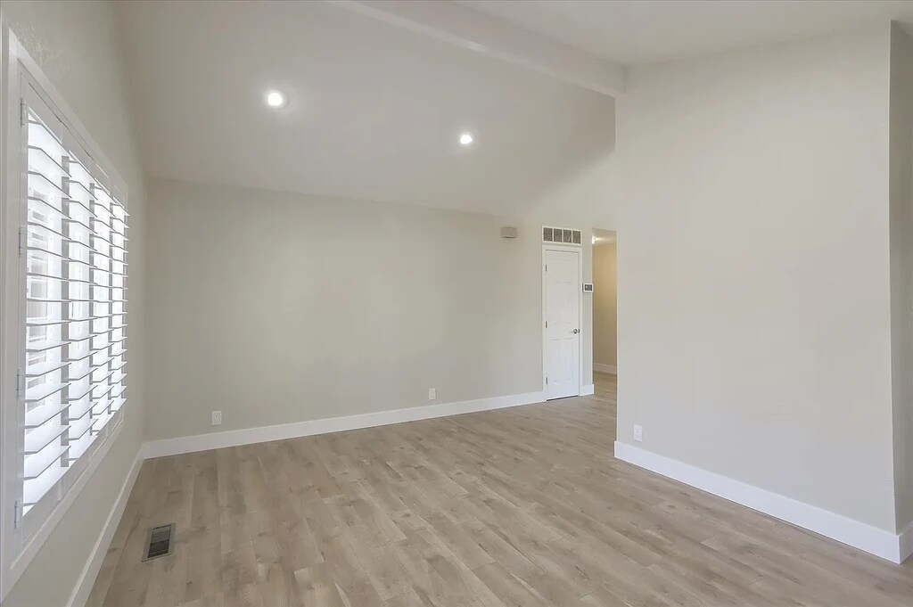This fully remodeled 4-bedroom, 2-bathroom single-family home in the desirable Evergreen area is ready for new tenants!~~The home features a beautifully custom-designed kitchen with dark wood cabinetry and stainless-steel appliances, along with fully updated bathrooms and hardwood flooring throughout. An impressive door opens to the backyard, filling the home with abundant natural light. Plantation shutters are installed in every room for both style and privacy. Enjoy year-round comfort with an upgraded furnace and central A/C. Additional conveniences include a two-car garage and a laundry area in the garage equipped with an energy-efficient washer and dryer. The spacious, gated, and private backyard has been professionally landscaped and is perfect for entertaining, barbecuing, or relaxing. The front yard also has great curb appeal. The garden is included in your monthly fee. Located on a quiet street and close to highly rated schools (Evergreen Elementary Chaboya Middle, this home offers comfort, privacy, and an excellent location.