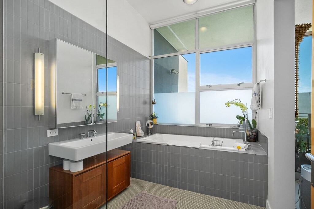 FULLY FURNISHED SHORT-TERM LEASE. One Bedroom + Den. Modern penthouse loft at the prestigious Gallery Lofts, available for a 6 month lease beginning June 1. Modern sophisticated residence offers an expansive open-concept layout, featuring soaring 11-foot ceilings, wide-plank wood floors, and floor-to-ceiling Fleetwood sliding glass doors that open to an expansive 200+ sq ft south-facing private patio perfect for seamless indoor-outdoor living and taking in city views. The chef's kitchen is outfitted with premium appliances and ample counter space, ideal for culinary enthusiasts and entertaining guests. The luxurious master suite includes a spa-inspired bathroom with a soaking tub, separate rainfall shower, blackout shades and a walk-in closet. A separate den/office provides a bright and comfortable area for remote work or relaxation. Additional features include two tandem parking spaces near the elevator in a secure gated garage, ample guest parking and EV charging stations. Residents enjoy exclusive access to serene community amenities, including a lush landscaped courtyard, double-sided outdoor fireplace, BBQ grills, and lounge areas. Located in the heart of the Marina Arts District, this loft is just moments from Marina Marketplace, top-rated grocery stores, Abbott Kinney, renowned for boutiques and restaurants, Venice Beach, and scenic biking trails. Experience modern penthouse living with all the comforts of home short-term, turnkey, and ready for you. All utilities included in the rent. Rent term may be negotiable.. No pets.