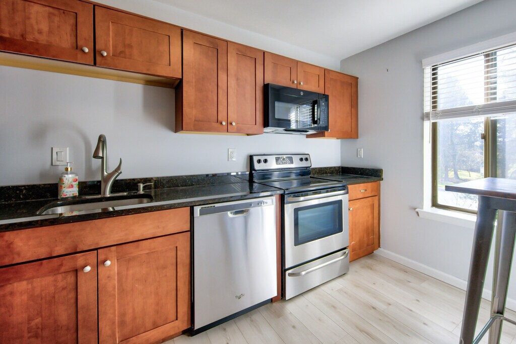 Devon Green 2nd floor 2 bedroom 2 bath. This is a small development with a great location it is close to the train, highways, shopping & Tredyffrin Easttown Schools. There is a reserved spot right out front and plenty of guest parking close by. Enter thru the front door to the stairs leading up to the 2nd floor unit. The Living Room is at the top of the stairs it has a coat closet, new recessed lighting, a wood burning fireplace, and entrance to a balcony which has a storage closet. The Dining Room has recessed lighting and access to the Kitchen & Living Room for great flow. The Kitchen has stainless steel appliances (refrigerator, dishwasher, range) and room for a small table & chairs. Both the Kitchen & Dining Room have windows that allow great natural light. The Bedrooms & Laundry are off of the Living Room. The Laundry is located in a hall closet, it is a stackable washer & dryer. There is a renovated full bath with tub shower off the hall. The 2nd bedroom has a large double window and closet. The Primary Bedroom has a large double window with 3 closets and a Primary renovated bath with stall shower. A great convenient place to call home. Rent includes water, sewer, trash, snow removal... tenant needs to pay for PECO (electric) and cable tv/internet