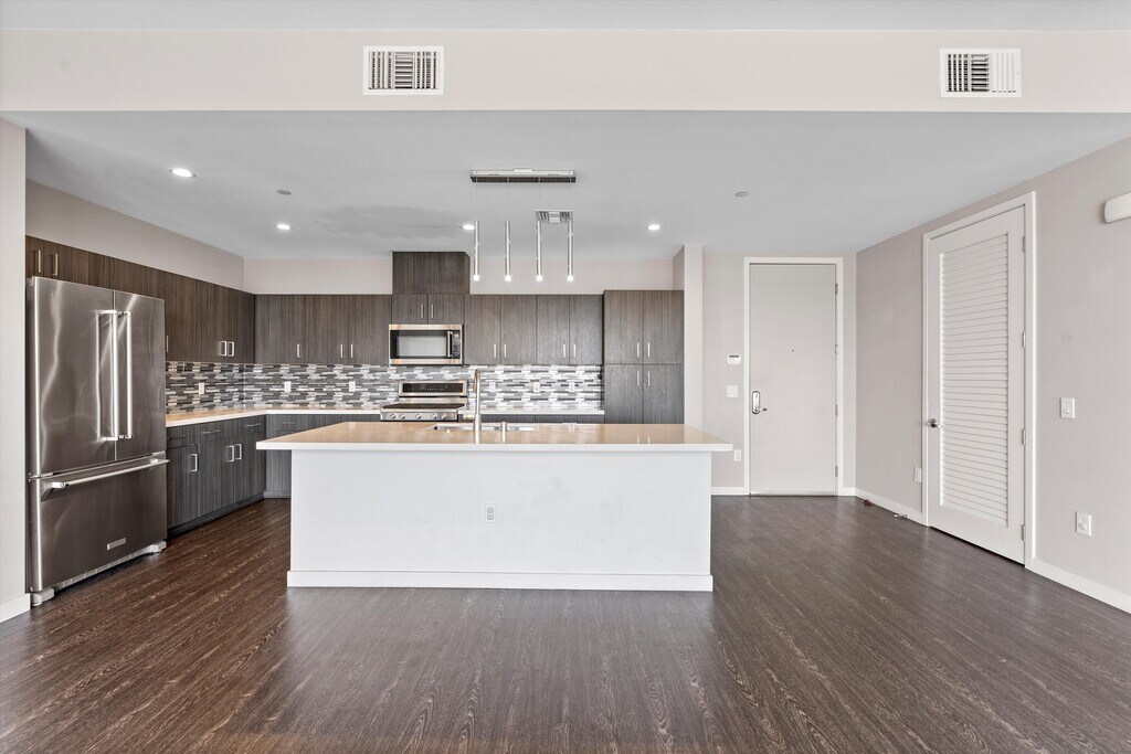Available second week of March! Experience indoor-outdoor living in North-facing penthouse in X67, a newer construction condo building in the heart of the Marina Arts District. Enter to open living space and large kitchen with island featuring stainless steel Kitchen Aid appliances and quartz countertops. Two primary bedroom suites, both with a small walk-in closet and a separate wall closet and feature beautiful bathrooms with dual sinks and modern fixtures. City skyline and mountain views from every room. Both bedrooms and living area open to approximately 400 SF balcony with WOW factor! Building has an onsite concierge, an outdoor lounge & pool area with cabanas, fitness center, and a community recreation room. 2 car side by side parking with EV charging available nearby. Short distance to Marina Marketplace shopping, restaurants, and AMC theater, easy access to freeways, and the beach!