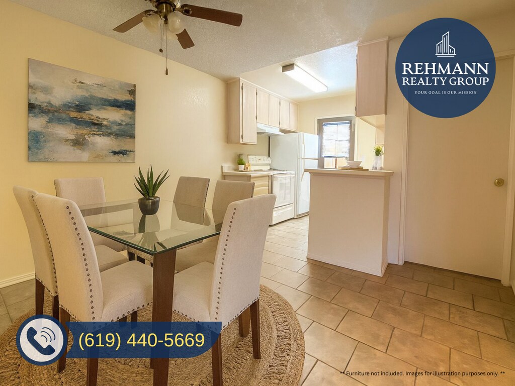 Spacious 1-Bedroom, 1-Bath Apartment in North Park! Special Move-In! Get $500 Off Your First Month's Rent! This charming unit is now available in the heart of North Park! Enjoy the comfort of a gated community with on-call maintenance and convenient shared laundry facilities. Property Features: - Refrigerator, stove/oven, dishwasher, and garbage disposal - Ceiling Fan - Wall A/C and Heat - Spacious Closet - 2 Parking Spaces: 1 Garage and 1 Assigned Space - Private Patio - On-site laundry room Utilities: Water, sewer, and trash are included in the rent! Prime Location: - Easy access to major freeways (94, 15, and 8) - Just 7 miles from SDSU, USD, and UCSD - Only 3 miles from Scripps Mercy Hospital - 2 miles to Balboa Park, one of San Diego's most iconic landmarks Don't miss out on this opportunity! ** Furniture not included. Images for illustration purposes only. **