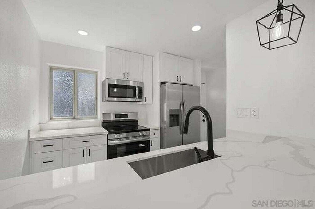 This central Clairemont fully remodeled 2BR/1BA condo in a gated community pairs fresh, modern finishes with everyday convenience. The stylish kitchen features a sleek bar perfect for casual dining, all-new appliances, quartz counters, and contemporary cabinetry, opening to a spacious living area and a private balcony great for morning coffee or evening fresh air. Inside, you'll find new flooring throughout, designer lighting, an updated bath, and the convenience of in-unit laundry (with additional community laundry available). The well-kept, gated complex offers two pools and two hot tubs, plus secure access, giving you both comfort and peace of mind. Located in the heart of Clairemont, you're just minutes from shopping, dining, parks, and major freeways ideal for an easy commute and a vibrant lifestyle. -Fully remodeled 2BR/1BA condo -Gated community with 2 pools & 2 hot tubs -Modern kitchen with bar seating, quartz counters & new appliances -Private balcony -In-unit laundry + community laundry Central Clairemont location close to shops, restaurants, parks & freeways Clean, contemporary, and move-in ready this rental offers easy living in a prime San Diego location.