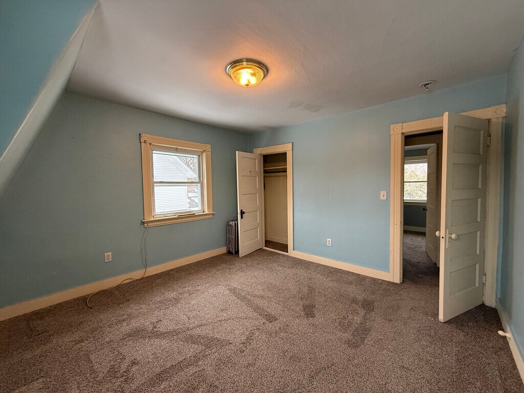 duplex on over an acre of land ,lawn, paved driveway and parking. 3 bedroom 1 1/2 bath, Private deck in back of house and private enclosed porch with windows and screens. 2 private entrances front and back, refrigerator, stove, dishwasher, pantry, ceramic tile floors, hardwood floors, carpet in bedrooms all with nice closets, linen closet, half bath first floor and full bath upstairs. Newer heating system, oil tank, and hot water heater. painted basement and lots of shelves for storage. this is a great price for this unit. Looking for good tenants.