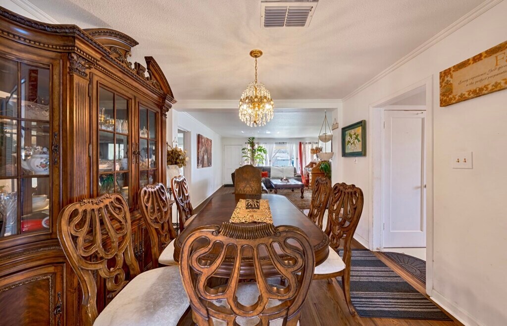 This home features 3 spacious bedrooms and 1 bathroom, offering plenty of room for families who want extra space. Inside, you’ll find updated hardwood flooring, lots of natural light, and a warm, inviting living room with a brick fireplace. The kitchen has plenty of cabinet space and opens into a dining area, making meals convenient and family-friendly. The bathroom is clean, bright, and easy to maintain. Outside, the property includes a covered front porch and a fully fenced backyard — ideal for privacy, outdoor relaxing, pets, or gardening. The yard also offers a patio area, great for barbecues or lounging. Parking is convenient with a garage and a carport, providing space for multiple vehicles or even RV storage. Located in a quiet neighborhood with quick access to shopping, restaurants, schools, and major freeways, this home combines comfort with convenience. Overall, this home is perfect for renters looking for a charming, functional space with room to make it their own.