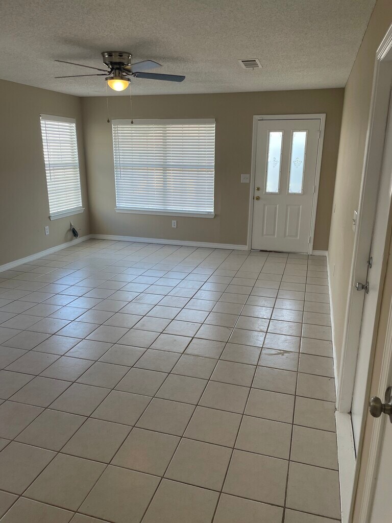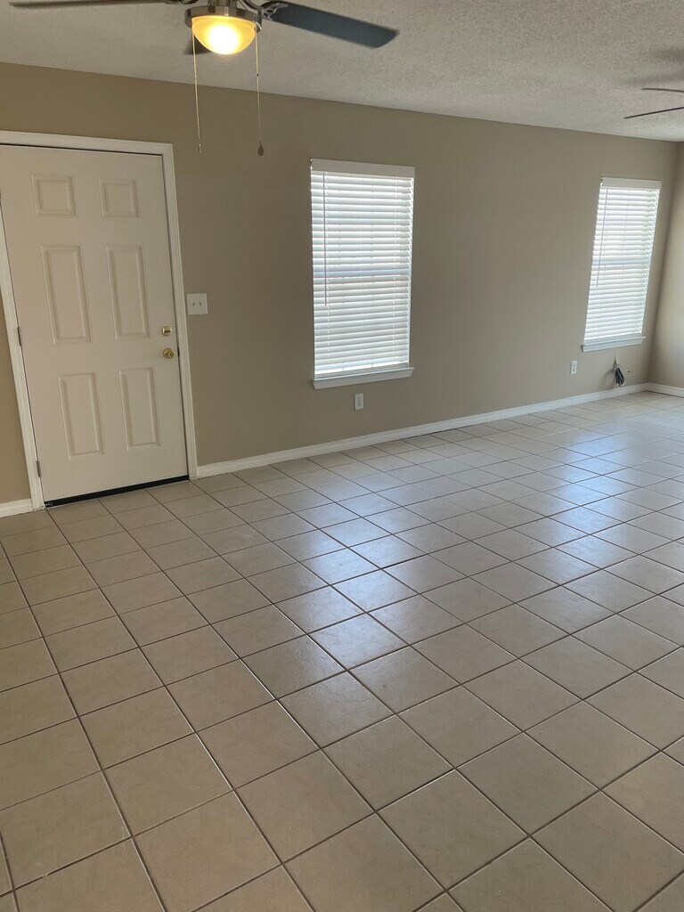 South of I-10. New paint, kitchen cabinets, sinks microwave, fridge, toilets,sinks, window blinds and ceiling fans. Two full baths, one car garage. New roof. Close to military bases. No smoking in house, no pets. The lease is for a duration of one year. House is South of I-10.