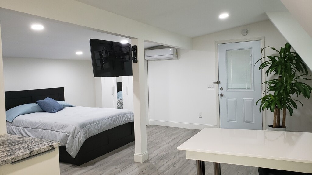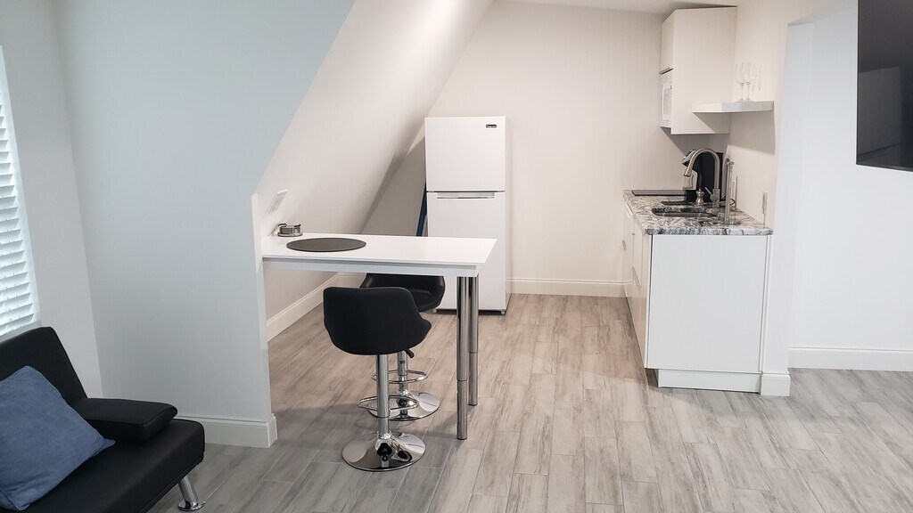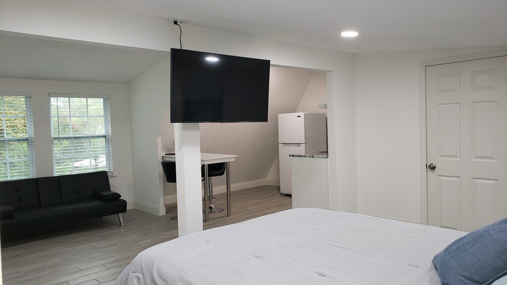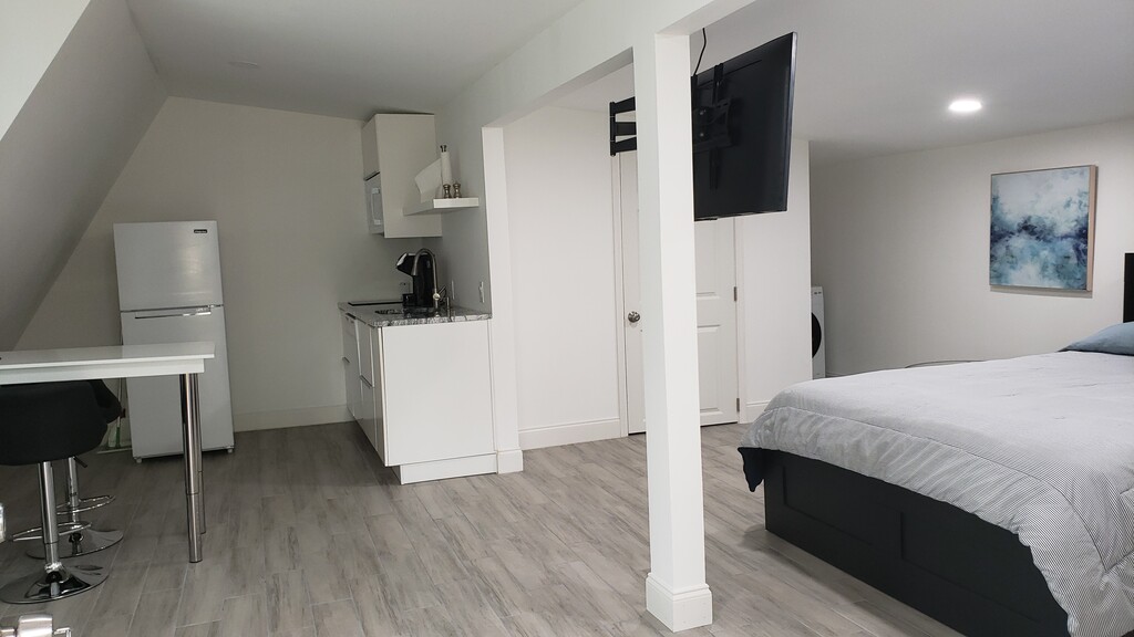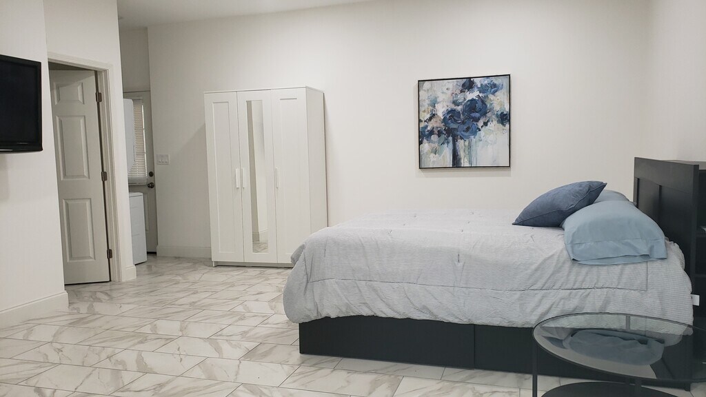 Apartamento tipo estudio amueblado de 1 dormitorio y 1 baño Ubicado en un tranquilo vecindario. Estufa de inducción de dos quemadores con entrada privada, horno de microondas, lavaplatos, lavadora/secadora automática, cafetera. en el segundo piso. (no accesible para sillas de ruedas) 1 estacionamiento fuera de la calle. 1 solo residente. Cuenta con camas, platos, sábanas, plancha y tabla de planchar. Este apartamento es ideal para médicos y enfermeros que viajan. Arrendamiento a corto y largo plazo disponible. No pets allowed.
