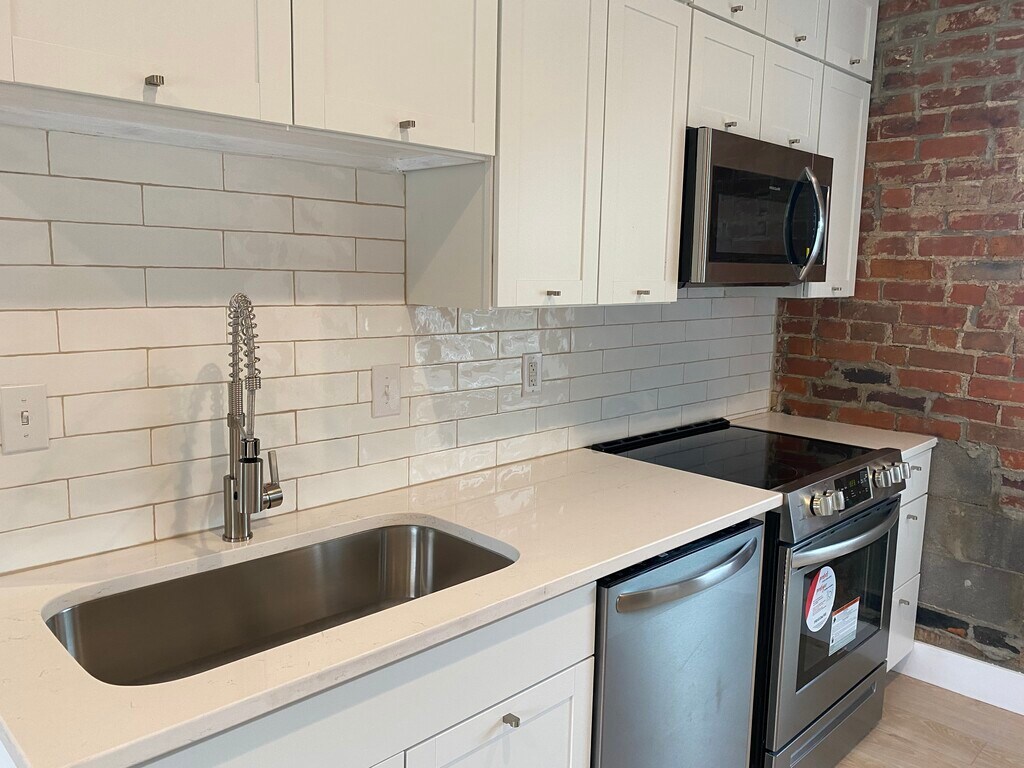 OTR PENTHOUSE - PRIVATE DECK! Enjoy the holidays in this gorgeous, roomy 2-BR 1,300 sq. ft. apartment spanning top level of 1890's Italianate near Findlay Market. Newly renovated, light-filled with exposed brick throughout. Two-story entry creates character with a sleek, contemporary feel. Cook's kitchen with upgraded appliances, pantry, quartz countertops, double set of cabinets and crown molding throughout. Open living/family room is perfect for entertaining. Separate space for study or extra area. Both bedrooms are unusually large. Built-in ladder to deck so you can enjoy every season with views of Music Hall, Cincinnati Museum Center and downtown Cincinnati - one of the prettiest you'll ever see! Plenty of on-street parking and no permit needed. Shared laundry with new washer and dryer. Building is filled with professionals. Calm, quiet street. City living at its best!