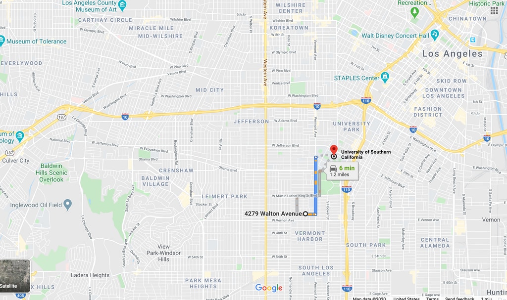 Está localizado en el barrio Vermont Harbor, 4279 Walton Avenue en el código postal 90037 de Los Angeles, CA.