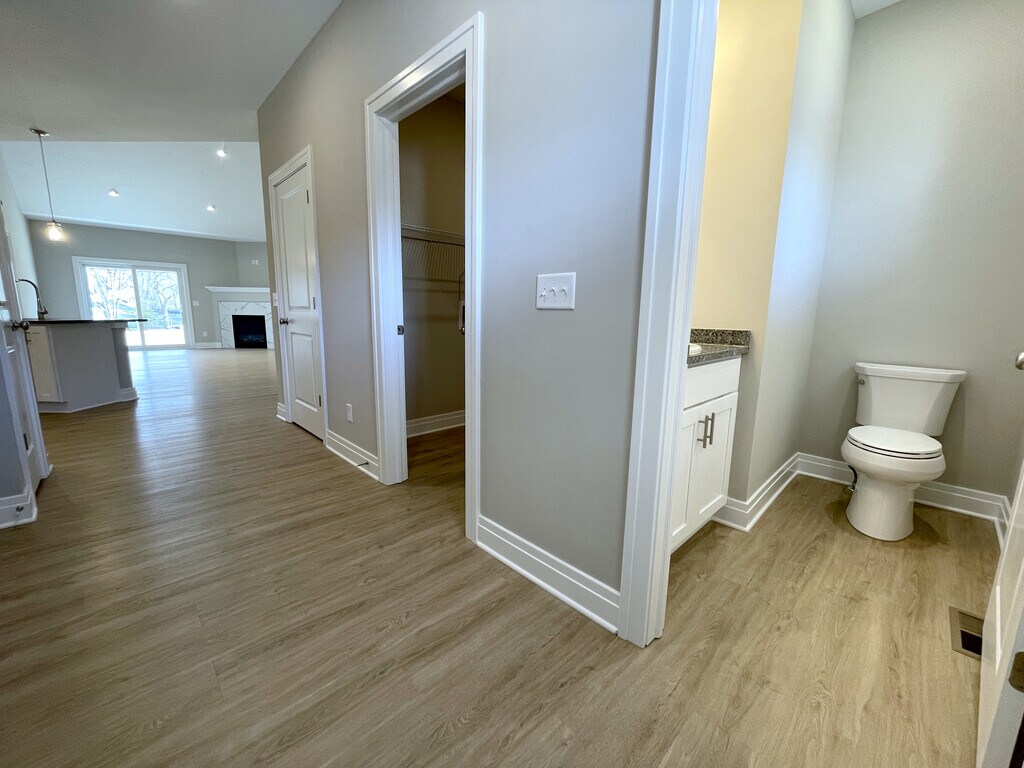 Welcome to The Madison, a like new beautifully designed 2-bedroom, 2.5-bathroom townhome in the desirable Berkley Square Community. Offering 1,560 square feet of thoughtfully crafted living space, this home combines modern elegance with maintenance-free convenience. From the moment you arrive, the home's architectural charm is evident, featuring decorative trim, a brick water table accent, and a covered front porch that welcomes you inside. Step through the front door into a bright and airy living space with 9-foot ceilings on the first floor and vaulted ceilings in the Great Room, creating an open and inviting atmosphere. The smooth painted ceilings, stained Arts & Crafts railings, and wood-look vinyl plank flooring add warmth and character throughout. The gourmet kitchen is both stylish and functional, complete with granite countertops, a tiled backsplash, cabinets with soft close drawers, and a stainless steel dishwasher and microwave. A peninsula with breakfast bar seating seamlessly connects the kitchen to the dining and living areas, making it an ideal space for entertaining. The Great Room is the heart of the home, featuring a cozy gas fireplace with a mantel and tile surround, recessed lighting, and a sliding door leading to the rear patio. Just off the main living area, a first-floor laundry room with a built-in countertop adds everyday convenience. Downstairs, the primary suite is a private retreat with a walk-in closet and an en-suite bath showcasing a tiled shower with a clear door, built-in seat, and a granite vanity countertop. The second bedroom on the second floor, is equally spacious, with easy access to a well-appointed full bath. A loft space overlooking the Great Room offers flexibility as a home office, reading nook, or additional lounge area. Living at Berkley Square means low-maintenance homeownership with an HOA that covers lawn care, snow removal, exterior maintenance, water, and garbage removal. Enjoy the convenience of concrete sidewalks, a beautifully landscaped front yard, and a premium insulated garage with a keypad opener. With its blend of high-end finishes, modern comforts, and hassle-free living, The Madison is the perfect place to call home. Schedule your private tour today!