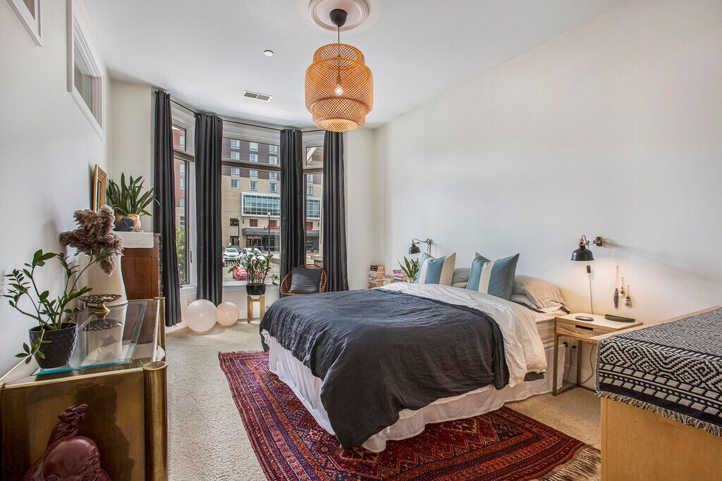 Welcome to 430 Union Ave NE #106 at Park Row Condos! Step into this beautifully updated 2-bedroom, 2 full-bath unit with artistic touches throughout. The entire condo has just been updated with plush new carpet and freshly painted walls. The abundance of windows fills the space with natural light, complementing the high ceilings and creating an open and airy atmosphere. The large primary bedroom features an en suite bathroom and a walk-in closet, providing a peaceful retreat. The open-concept kitchen with tall cabinets and ample storage space is perfect for those who love to cook and entertain. The open floor plan allows for seamless flow and creates an inviting space for gatherings. A ceiling fan keeps the unit cool during the summer months, while the brick construction helps retain heat in the winter, offering efficient temperature control year-round. Enjoy the convenience of a new, in-unit, high-efficiency washer and dryer stack, making laundry a breeze (note: photos show previous washer/dryer). One of the highlights of this unit is the enormous, class-of-its-own patio-- a rare find in downtown condo living. This private outdoor space is incredibly spacious and versatile, accommodating multiple seating areas, a grilling area, a dining area, a fire pit, and even a container garden. Whether you're enjoying summer evenings or sitting by the fire in winter, this patio is truly exceptional. As a southwest corner unit, you'll bask in beautiful sunlight throughout the day. Additional features include a new garbage disposal, a temperature-controlled indoor parking spot with storage space, and an extra parking pass for covered outdoor parking. The building is equipped with key fob readers, a keypad and intercom system for secure access, and convenient indoor mailboxes and package delivery. The recently painted, carpeted, and decorated common spaces, including the front lobby, add a fresh and welcoming touch. Located within walking distance of Martha's Vineyard and its sister businesses, you'll have easy access to a gourmet grocery, delicious pizza, delectable baked goods, and a cozy cafe. This condo's ideal location places you close to hospitals, highways, and a walkable neighborhood with numerous restaurants, bars, and coffee shops. Enjoy the proximity to Highland Park, a sprawling urban park offering outdoor activities and green spaces just a block away. A small park/greenspace across the street adds to the charm of the area. With friendly neighbors and the inclusion of water, sewer, trash, and recycling in the rent, this condo offers a convenient and comfortable lifestyle. Please note that cats are welcome, and all other utilities (gas, electric, and internet/cable) are the responsibility of the tenant. Don't miss out on the opportunity to call this remarkable condo home. Contact us today to schedule a viewing and experience the best of urban living at 430 Union Ave NE #106.