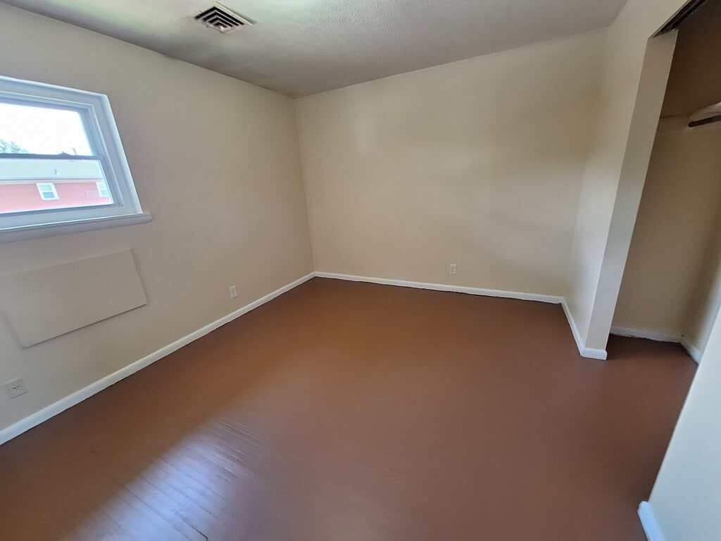 Apartment for rent. The apartment has 2 bedrooms and 1 bath. Second floor unit. New paint throughout. Hardwood floors. Kitchen with stove and refrigerator. Storage space in the utility room. Central heat and central air. Tenants can have a cat for extra $15 / month plus a one time non-refundable pet fee of $100. No dogs in the apartment.