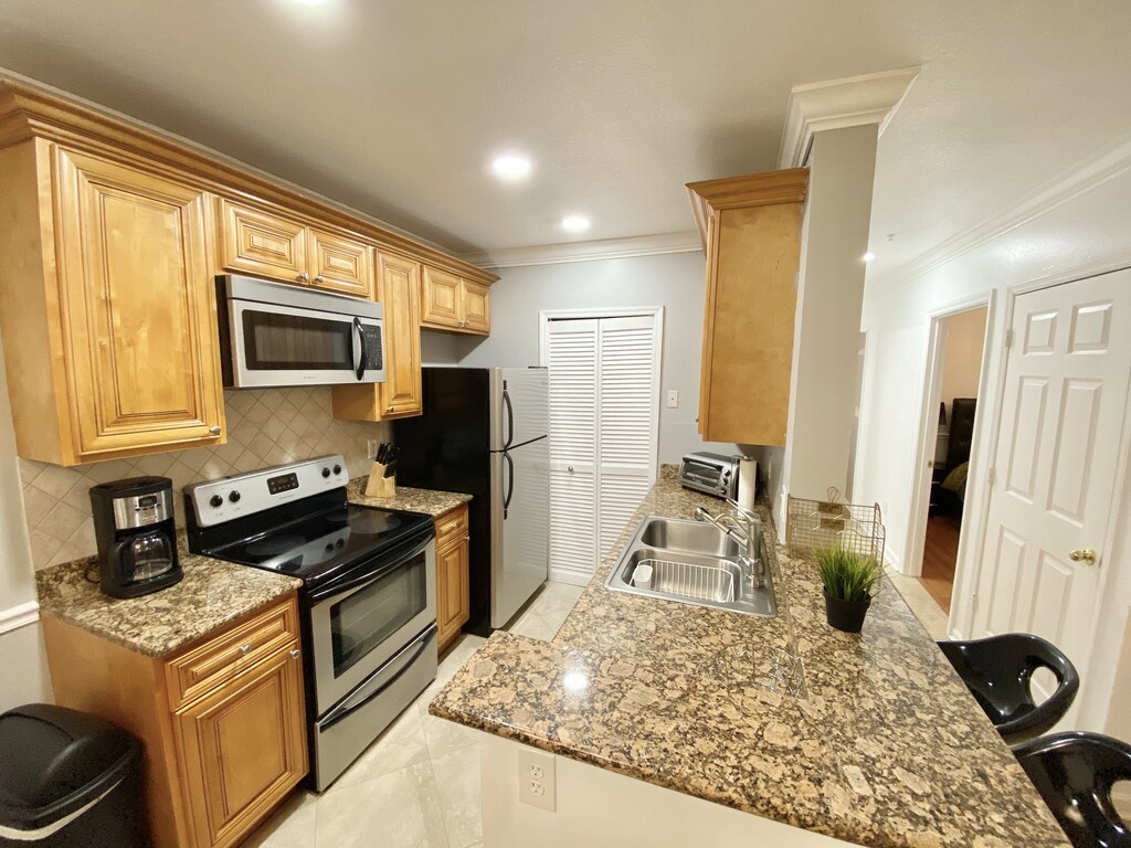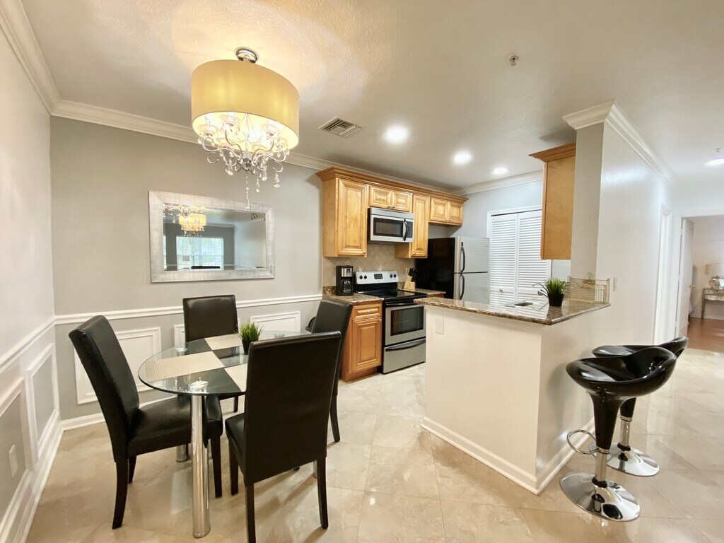 FULLY FURNISHED & FULLY EQUIPPED | Short & Long term available | All-inclusive pricing!! Experience the epitome of luxury in this fully furnished 2-bedroom, 2-bath condo ideally located less than 10 minutes from Universal Studios in Orlando. Situated within a resort-style community, enjoy the convenience of all-inclusive pricing and access to premier amenities such as a BBQ area, swimming pool, and scenic pier overlooking a serene lake. With designated parking spots and a gated entrance featuring 24hr security, revel in both comfort and peace of mind. Features: 2 bedroom 2 bath 1,000 Sq Ft. Professionally Furnished All Equipped (towels, sheets, fully equipped kitchen) All-Inclusive Pricing: WIFI, Electricity, Water, Pest Control SMART TV included with streaming capabilities (no cable TV) Washer/Dryer Inside Unit (Full size) 2 Assigned Parking Spots Gated Community with security on-site First Floor Entry 2 Queen Size Beds For move in we require: First Months Rent Security Deposit (one month's rent) $250 Cleaning Fee? (deducted from the security deposit at the end of your stay) $150 Application Fee $300 Non-Refundable Pet Fee Visit our website or contact us now for more information! Orlando City Corporate Housing