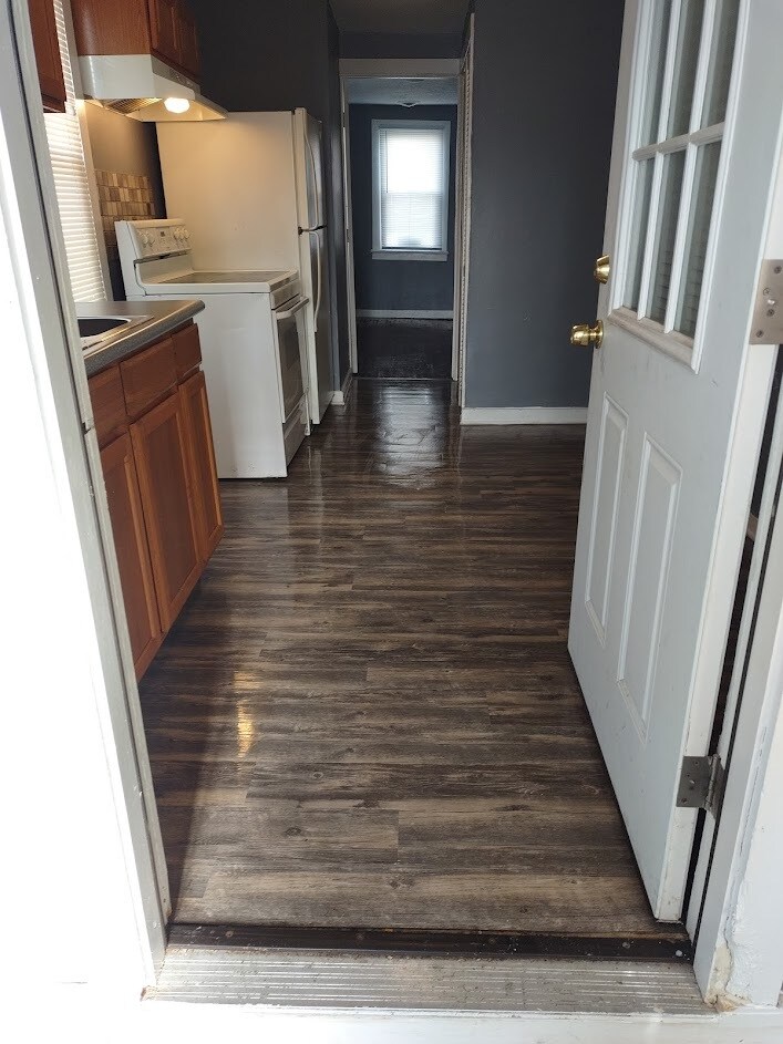 This is a Very Cute Character Home in a Nice Quiet Neighborhood !! The Home has been completely renovated inside and out with Cherry Hardwood & Vinyl flooring, blinds and painting throughout. There is (2) bedrooms and (1) bathroom on the main floor. The Kitchen includes a Refrigerator and Electric Range for the cooking enthusiast. There is also a Laundry Room/Back Enclosed Porch just off the kitchen. On the outside this home includes a Very Big Grass Yard ideal for entertaining, barbecuing and Privacy. The location of this home is in a nice and quiet neighborhood. Very Nice and Cute Home. Renter pays for own utilities (Water, Gas, Electric). Minimum 1 Year Lease required with 1 month security deposit. Small Pets considered with additional Pet deposit/rent. Prefer non-smoking tenant. Must Have stable employment earning at least 3 times monthly rent and have no felonies or evictions in last 5 years. $45 application fee per adult. Available Now or December 1, 2025 !!