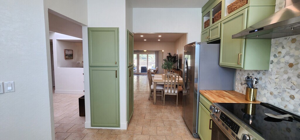 Enjoy gorgeous views of the Santa Rita Mountains from the front patio of this newly renovated and beautifully furnished townhouse in desirable Villages of Green Valley neighborhood, a 55+ community, in Green Valley. Exquisite 2 bedroom, 2 bathroom townhome with an open office that includes a twin trundle bed and functions as a third bedroom space; master bedroom includes a California King bed and front bedroom includes a Queen. Stainless steel appliances and soft-close cabinets in kitchen. Bathrooms boast beautiful vanities with marble countertops. No carpet, tile throughout. Property is furnished. $1,695 rent includes trash and Wi-Fi. Renter pays for other utilities. No smoking allowed. One small dog may be considered with an additional deposit. Property includes access to community pool, which is heated year-round. Available to rent June 1 through December 31, 2026. Available to rent on a month-to-month basis. $1,500 refundable security deposit due at signing. This is a 55+ community, so at least one renter must be at least 55 years old.