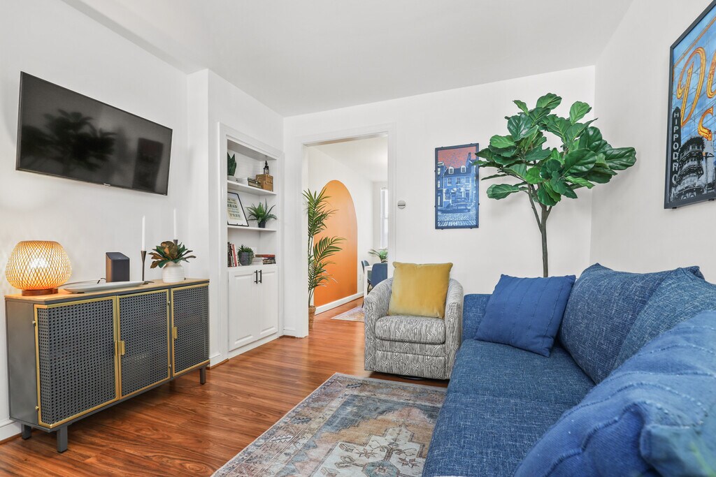 THIS FULLY FURNISHED PROPERTY IS AVAILABLE FOR 1- to 3-MONTH LEASES ONLY. ALL UTILITIES INCLUDED. ONE-TIME $300 CLEANING FEE REQUIRED. This furnished, 2-bedroom, 1-bathroom 1870s rowhouse has been fully updated with a walk-in glass shower, washer/dryer, airy sunroom with classic arcade gaming console, string-lit backyard, dedicated office space, wood flooring throughout, and a romantic, exposed-brick-and-beam 3rd floor loft. Situated on a private, gated side street, this charming home is located in the heart of Baltimore, steps away from some of the city's best neighborhoods. With a Walk Score of 98/100 ("Walker's Paradise"), you can quickly and easily walk to the Fells Point waterfront, Harbor East, Little Italy, and the Inner Harbor, providing you with many excellent choices for great restaurants and bars, boutique shopping, and attractions that will help to make your stay memorable. (30 to 90-day rentals preferred) Your Baltimore home is ideally located with easy access to: Whole Foods Market (7 min walk) Fells Point Farmers Market, Waterfront & Nightlife (9 min walk) Johns Hopkins Hospital (7 min Green Route bus line ride) Harbor East Shops, Restaurants and Cinemas (10 min walk) Adee's Coffee Roasters (4 min walk) Starbucks (9 min walk) Little Italy's famous restaurants (8 min walk) ZIPS Dry Cleaners (3 min walk) Fleet & Eden Parking Garage (4 min walk) Enterprise Rent-A-Car (4 min walk) Mustang Alley's Bowling Lanes (5 min walk) Patterson Park Boat Lake (20 min walk) Pier Six Concert Pavilion (10 min walk) National Aquarium (17 min walk) Baltimore Convention Center (27 min walk) Oriole Park at Camden Yards (35 min walk) You'll love living on this charming street with access to all that Fells Point and the surrounding neighborhoods have to offer. (Did we mention the daily aroma of baking bread that fills the air from the nearby H&S Bakery, a Baltimore institution?) Accommodations 2 bedrooms 1 bath Fully furnished and thoughtfully decorated Private, gated street Ring security cameras Essentials (Kitchenware, bed & bath linens) Home office WiFi 2 Roku Smart TVs Air Conditioning Heating Smoke Detector Carbon Monoxide Detector First Aid Kit Fire Extinguisher Fully appointed kitchen w/full-sized fridge & Keurig machine Sunroom with classic video game console Walled backyard with garden, overhead string lights, and outdoor furniture Non-Smoking Sorry, no pets or parties of any kind Stairs at entrance and inside the property- Not recommended for young children Street parking and option for monthly rate parking in nearby lot 100 feet away from local bus: Citylink Navy Line Book your stay now and experience the comfort and convenience of this fantastic Fells Point hideaway!