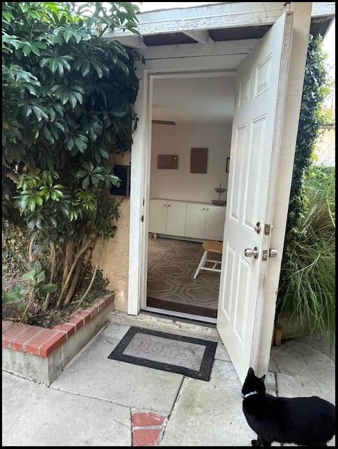This dwelling is a professionally converted garage. Good-sized main room, full bathroom; small cooking area with two-burner range. Desk, refrigerator, clothes chest, good-sized closet area. So physically, maybe like what one might expect in a hotel situation. However—and so perhaps beyond what one expects in a hotel or similar—a well-lit private entrance, locked front gate, plenty of street parking (never a hassle), own mailbox; in a peaceful and safe part of town. Internet access. Lime tree, banana trees, persimmons, avocado tree, orange tree; all fruit bearing. Pick 'em and eat 'em. Lightly furnished, as can be seen in the photos. Close to Sony Studios and Culver (now Amazon) Studios, downtown Culver City, restaurants (Japanese, Cuban, Thai, Italian, Mexican, Brazilian, Nepalese, Argentine, mom-and-pop coffee shops) and the Ballona Creek Bike Path (a protected, off-street paved bike path that goes four miles to the beach, connecting there with the 25-miles long beach bicycle path along the Pacific Ocean). Public transportation is close by, as we're two blocks from Sepulveda Blvd and half a block from Culver Blvd. The back yard is completely enclosed, with lots of greenery. We have a small-ish doggie, two kitty-cats and two bunny rabbits, so unfortunately it's unlikely another animal would fit into the scene. This is a good situation for a student, a flight attendant (we're four miles from LAX), someone in LA for work at Sony, a 'landing pad' for someone who comes in and out of LA, or similar. - - - We're not looking for a long-term renter - it may work out to be what happens, and if so, fine. But we have a family member and a long-time friend, each of whom may move to LA. If one of them does, then we want to let them have the place while they find a permanent home. But, if that is going to happen, we'll give you six whole weeks advance notice, so you're not caught by surprise and have time to relocate. Clear? (And we ask six weeks advance notice if you decide to leave as well.) I also want to continue making the place nicer. (I want to put in some kitchen cabinetry, a hanger for pots and pans, a couple more pieces of furniture, and whatever other seems good.) What we've done in the past is do this kind of thing when the renter is away for a few days, or gone for vacation. So it's the kind of thing we'd work out, so you WON'T be intruded upon or inconvenienced! Make sense? Enough.