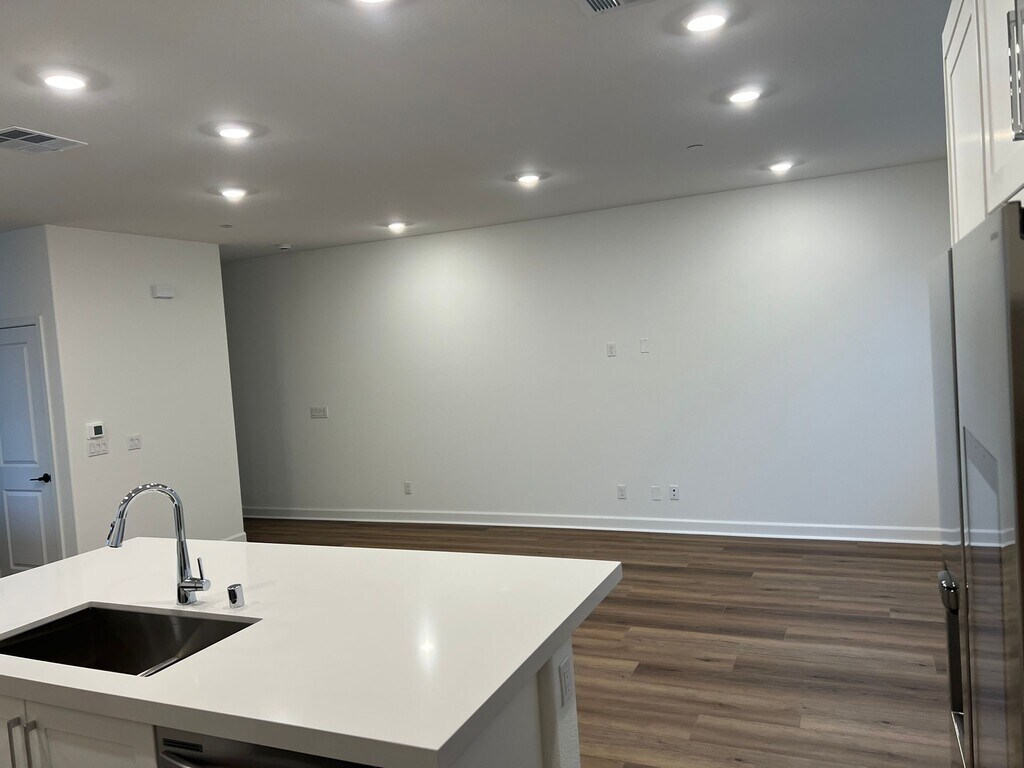 Be the first to live in this brand new and beautifully upgraded 3-bedroom, 2 full-bath, 2 powder-room townhouse in newly developed The Hill District within the highly desirable North City neighborhood of San Marcos, just steps from Cal State San Marcos and Kaiser Permanente. With 1,544 sq ft of thoughtfully designed living space, this home blends modern comfort with everyday convenience. The open-concept main living area features upgraded luxury vinyl plank flooring, large windows, and abundant natural light, creating a bright and inviting atmosphere. The modern kitchen is equipped with sleek brand new appliances that includes a dishwasher, microwave, range and an AI-powered smart refrigerator, perfect for today's connected lifestyle. Step out onto the private balcony and unwind with stunning sunset and mountain views a true highlight of the home. The spacious primary suite offers a relaxing retreat with a walk-in closet and an en-suite bathroom featuring dual sinks. Two additional bedrooms provide flexibility for family, guests, or a home office. With two full bathrooms plus two powder rooms, the layout is ideal for both daily living and entertaining. Enjoy indoor-outdoor living with an enclosed front yard, perfect for relaxing, hosting guests, or letting pets roam safely. The oversized two-car garage includes extra storage, a sealed epoxy floor, an EV charging port, and added convenience for modern living. This pet-friendly home also includes solar electricity with battery backup, offering energy efficiency and peace of mind. Residents will soon enjoy brand-new community amenities, estimated for completion later this year, including a resort-style pool, fitness clubhouse, scenic walking trails, expansive parks, dog parks, sports courts, and other family-friendly features. Walking trails connect the community directly to North City dining, coffee shops, grocery stores, and parks, while top-rated schools, shopping, and major freeways are all nearby. A perfect blend of comfort, convenience, and contemporary style this North City townhome is ready to welcome you home. Renter pays for water, trash and electricity. With solar panels and a battery, electricity bill should be limited. No smoking allowed and 2 parking spaces in the garage included.