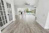 Live on the water and keep your lifestyle centered around it! Saltwater canal setting. Renovated interior. Smart home control. Heated pool and spa. Canal frontage with a community boat ramp located one block away. LAWN AND POOL CARE INCLUDED This single level waterfront home in The Inlets offers 75 feet on a deep saltwater canal with direct access to the Manatee River, Tampa Bay, and the Gulf. No locks. Straight run to open water. The home features strong natural light, a clean open split floor plan, porcelain flooring, LG appliances installed in 2020, and fresh interior paint. The primary suite was fully renovated in 2026 with a floating double vanity, LED mirror, updated lighting, conditioned storage space, new toilets, and a freestanding soaking tub. The pool bath has also been renovated with updated finishes and direct outdoor access. The kitchen includes wood cabinetry and granite countertops and opens into the main living area and the covered enclosed patio. A new 4 ton inverter multizone A/C system was installed in 2024 and can be controlled at the wall or through the app. Smart home features include an integrated SmartThings system with automated scenes for sunrise, sunset, and pool settings, along with control of locks, lights, and curtains. The property includes a Tesla wall charger with 48 amp output and natural gas service with a stainless steel Weber grill. The outdoor space features a private gas heated gunite pool and in ground spa inside a screened enclosure, along with an outdoor shower for rinsing off after time on the water. The exterior includes stone and brick details, hurricane shutters, and reinforced screen enclosure and garage door. The Inlets is a boating community with tennis courts, nature trails, kayaking, a playground, and regular social events. Convenient access to I75 and SR64 with close proximity to beaches, Sarasota, St. Petersburg, Tampa, dining, and shopping. Important: There is currently no functional dock or boat lift included with this rental. The property has canal frontage and water views, but boat tie up at the home is not available. A community boat ramp is located one block away for convenient launching. Owner covers $400 in monthly fees which include: HOA, Landscaping, lawn service including fertilizer, mowing and shrub trimming, and pool maintenance. Tenant is covers all other utilities. Pets considered on a case by case basis.