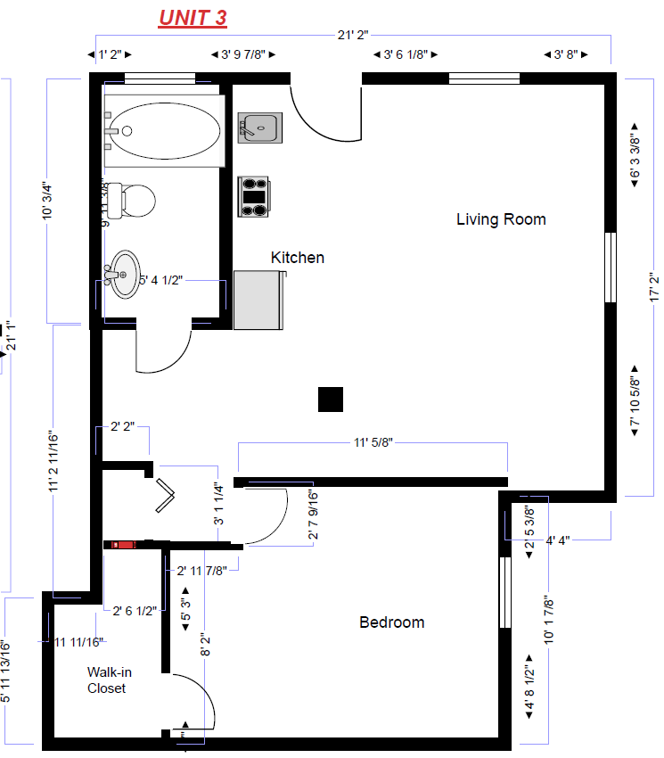 Detalles y características de la Unidad #3 - 1 bed 1 bath