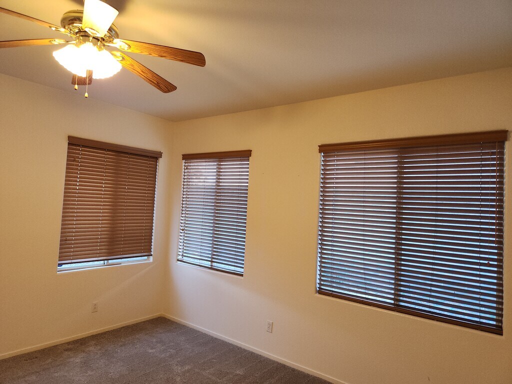 *3 bedroom/2 bath, 2 car garage, one story house, 1384sf, with Tesla/EV charging prewire in garage *Beautiful secure gated community near Lone Mountain/215 in NW area *$1995/month, One year lease, Deposit $1995 *Rent includes garbage, sewer, HOA included. Tenant pays power, gas, water *Non-refundable pet fee (if pet) $300. Cat or small dog only. See "Pet Door" below *No smoking, has always been a smoke free house *Upgraded carpet one year old in bedrooms, tile floors in all living areas. Gated community with individual entry gate codes. Quiet area near Lone Mountain/215 in NW. *Stable employment and tenant history required, no evictions past or current *Credit and criminal background checks will be done *Message/E-Mail to arrange showing. *Gated community with internal park w/children's play area, hiking trails trailhead at base of Lone Mountain, views of city, total of 7 city parks within 3 miles of property including 2 equestrian parks, baseball park, lighted tennis court park, YMCA, 2 children's water play areas *Spectacular night views of Lone Mountain and city below *Local restaurants and shopping. Hiking trails into Spring Mountains and paved jogging trails circling around and up to top of Lone Mountain. Paved bike pedestrian pathway down to neighborhood shopping center. Wells Fargo, BofA, Starbucks, Coffee Convo, Tropical Smoothie, new tavern, Capriotti's subs, Edge of Town Tavern, Subway, Roberto's Taco Shop, Rosati's Pizza, UPS store, 2 Chevron gas/convenience stores with Amazon drop lockers, Wal-Mart neighborhood grocery all within 3 miles. *Master bedroom with private bath and walk-in closet *Second bedroom configured as office/den with double door entrance *Ceiling fans throughout *Faux wood plantation blinds on all windows *Kitchen pantry for food storage *Large farmer's sink with pull down faucet and soap dispenser, plumbed for reverse osmosis system *All appliances included *Side-by-side fridge, dishwasher, built in microwave over stove, washer and dryer *Whole house water filtration system with bypass valve if not used *Garage door opener with entry keypad *Garage prewired for 220V Tesla EV charging *Pet door opens to backyard walkway and concrete pad patio with room for BBQ, panel insert if not used *Backyard astroturf pet area *Tenant will be registered with HOA and provided with gate codes/transmitter to open entrance gate from their car Message or send email