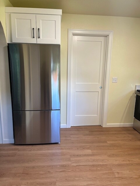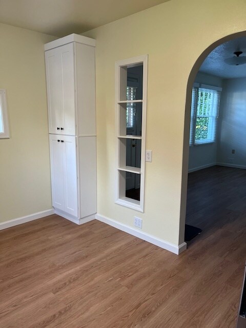 This is a secluded house is located in the center of a flag lot giving you privacy with trees and hedges surrounding you. You will have a comfortable living area. Lawn care is provided. There is a carport for one car. This charming one bedroom, one bath home has a remodeled kitchen with all new stainless steel appliances, new kitchen sink and cabinets, laundry hook ups for your washer and dryer plus additional storage in a back yard shed. Heat/AC is electric. Window coverings are included. Deposit is one month rent. This is a non smoking home. No pets allowed. This home is ideal for those seeking a compact living space with the essential amenities