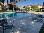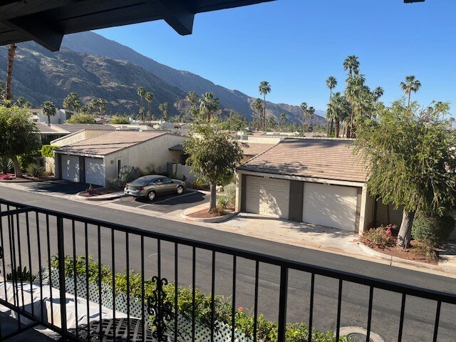 Desirable south Palm Springs condo, two full on-suite primary bedrooms with full baths, including gorgeous mountain views, available from all windows. Full amenities, tennis, pools, spa, gym, rec room, library. 5 minutes from downtown PS. New paint and flooring, with one common wall. Beautiful deck area.