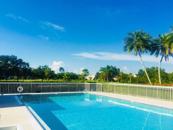 Beautiful Huge (over 1100sq ft) top floor (6th) condo next to elevator. Beautiful Golf course and water feature view. This large condo has a big living room dining room area with a mirrored wall, a large kitchen with ample room for a dining table and 4 chairs with a view to the south. There is a large enclosed patio with plenty of room for a fold out bed and beautiful view. The large bedroom also features a great view and a huge walk-in closet and a full bath with shower. There is also another full bath with a tub and shower This condo includes High Speed Internet, Basic Cable plus a few premium channels like HBO Max and Hulu, also Water Sewer and Garbage. For parking you get a dedicated Covered parking space. There is a Publix across the street as well as other shopping and restaurants. Close to Beaches!!! Centrally located. Wonderful place to live.