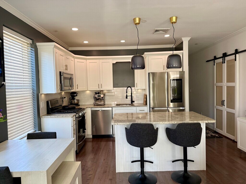 Great apartment with a lot of natural light. Central AC/ forced heat with Nest thermostat. Samsung smart refrigerator. In unit LG smart washtower. One assigned off street parking. Near public transportation including the blue line. Water included.