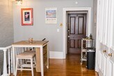 One-bedroom apartment in an architecturally interesting building. (Actual entrance and main living space above street level). Hardwood floors and historic wood molding/trim throughout. Newly remodeled and painted. Combined living room/dining room with galley kitchen. Decorative, non-functioning fireplace in the living room. Sliding glass doors to private balcony and patio off the living area. Lower level bedroom and bathroom with a walk-out area off the bedroom. Shared coin washer/dryer facilities in the basement for use by tenants. Off-street parking and dedicated parking in the back. Walking distance to CWE shops and restaurants. Excellent location for BJC personnel, SLU, and Wash U. Full month's rent for 1st month due upon occupancy. Newly furnished with brand new couch, and all the basic necessities for a comfortable stay.