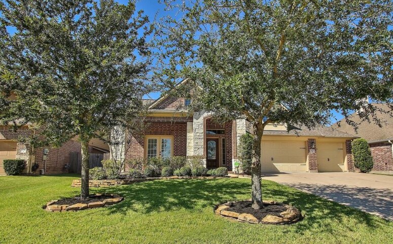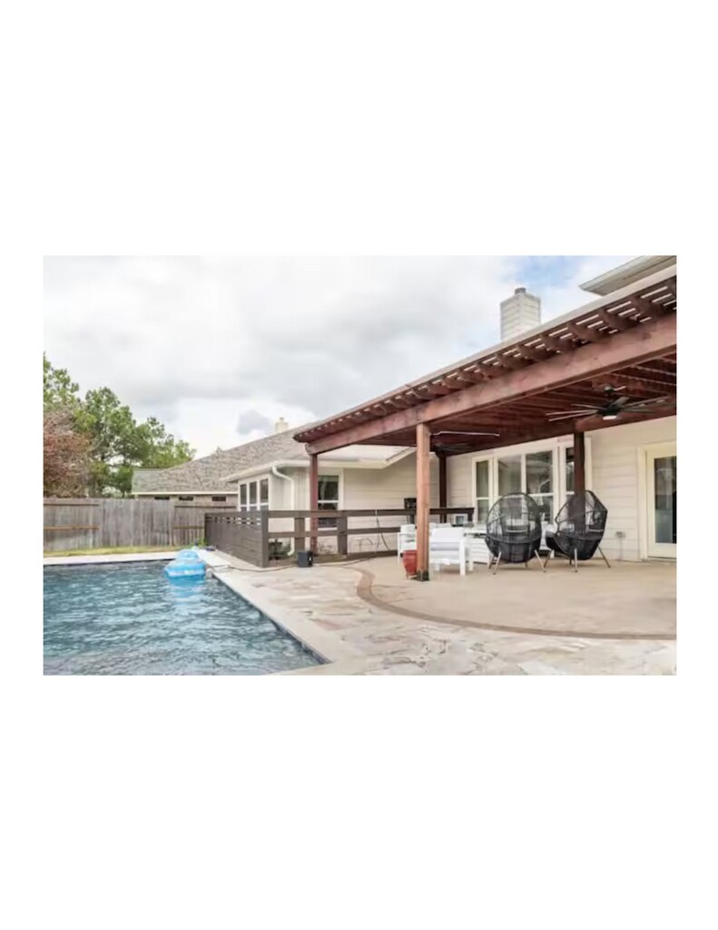 This beautifully maintained 4-bedroom, 2.5-bath home offers over 3,000 square feet of thoughtfully designed living space in the desirable Lakes of Pine Forest community. Built in 2010, the two-story layout blends comfort and functionality with multiple living areas, a dedicated home office, and a large upstairs game room. Step into an inviting open-concept floor plan featuring a gourmet kitchen with granite countertops, stainless steel appliances, a center island, and a walk-in pantry—perfect for everyday living and entertaining. The spacious family room is filled with natural light and centered around a cozy fireplace. Upstairs, you'll find generously sized bedrooms, including a private primary suite with a large walk-in closet, soaking tub, and dual vanities. Outside, enjoy your own private backyard oasis complete with a gunite pool, covered patio with ceiling fans, and a sprinkler system—all designed for relaxing or entertaining year-round. Additional highlights include a 3-car attached garage, energy-efficient systems, and a low-maintenance brick exterior. Located on a quiet street just minutes from shopping, dining, and easy access to I-10 and Highway 6, this move-in ready home is the perfect blend of space, style, and location.