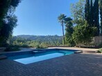 Spanish-style gated view Home located in a private setting with shared driveway with one other home. The residence offers 2392 sq ft of living space with 3 car garage on an approximately 9,000 sq ft lot. The home features 3 bedrooms and 2 bathrooms plus powder room, indoor laundry facilities, Great kitchen with Bosch appliances. Spacious living room, Den with fireplace, large windows to capture beautiful views from nearly every side with wrap around balcony, natural light fills the home, enhancing the warm character of the Spanish charm. This house is perfect for entertaining indoor and outdoor with a large size recently refurbished swimming pool, back and front yard with roses and some fruit trees.