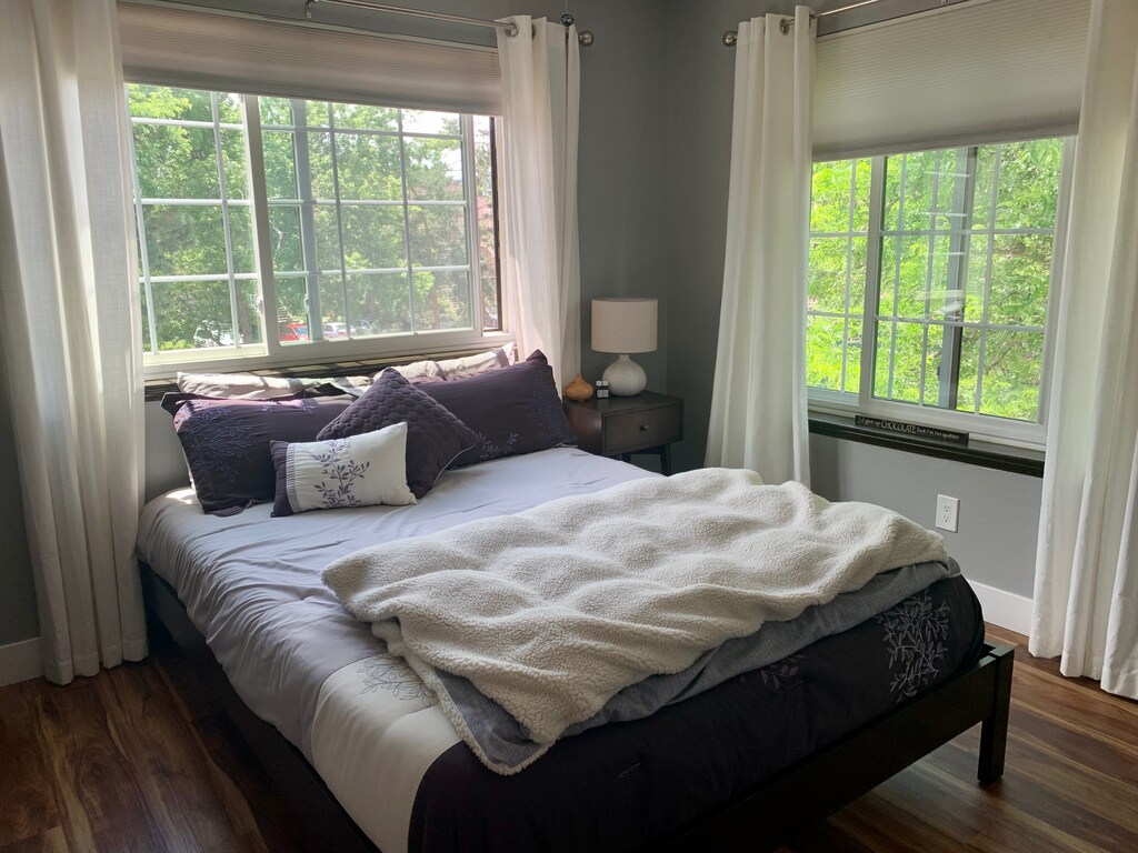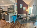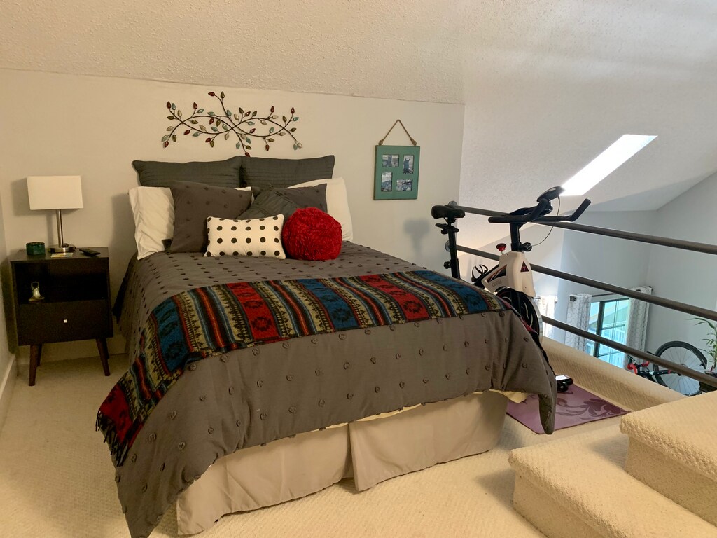 Perfect for a young professional single, or a couple. The condo is 2 bedrooms + 1 bath (second bedroom with french doors good for an office/passion/project room), with an additional upstairs loft (furnished as a guest space). Top floor with vaulted ceilings, skylight, and windows on 3 sides provide ample natural lighting. The entire unit has been updated including all flooring, and a newly remodeled kitchen and bathroom with new countertops, sinks, faucets, appliances, and more. Lots of storage space including an attic, upstairs storage closet, and an additional gear closet just outside the front door.