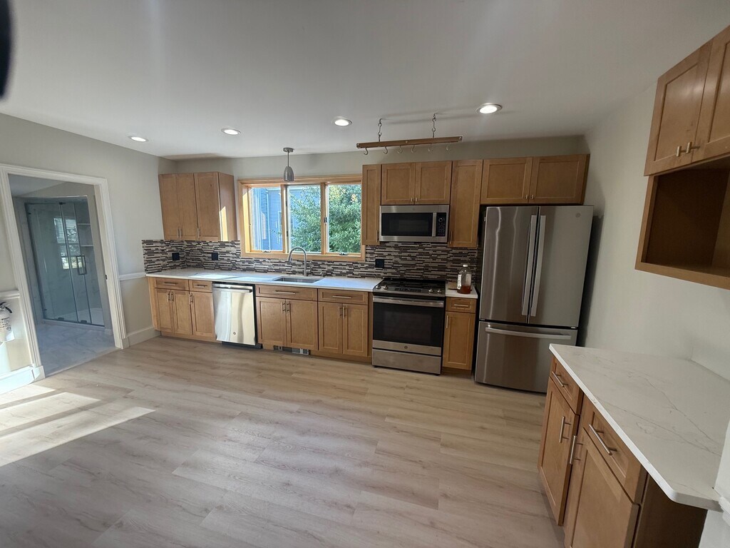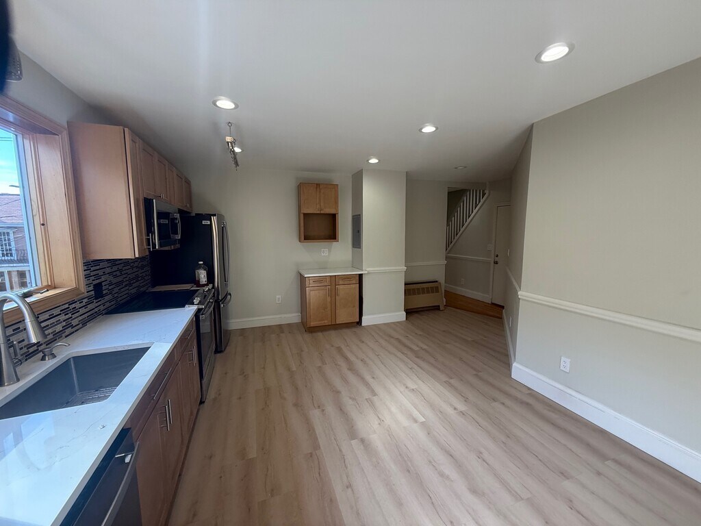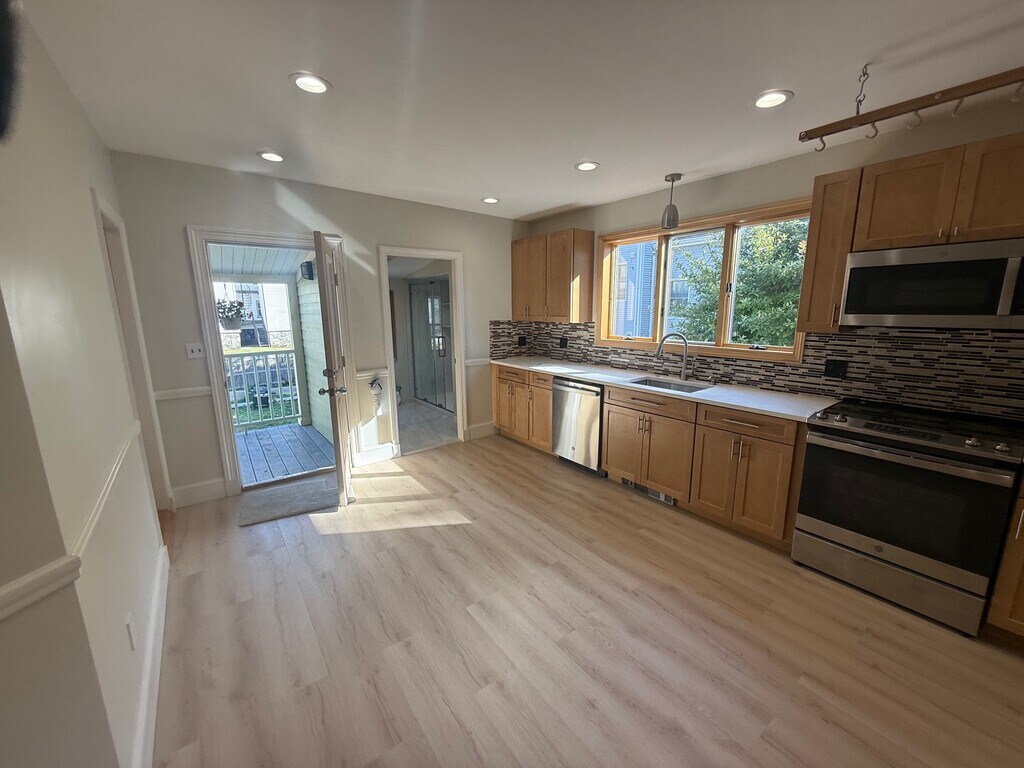 Brand new renovated duplex on top floors of Brighton multi-family that features: - Hardwood flooring throughout 1st floor! - High end, fully equipped eat in kitchen! - Stainless appliances inc dishwasher! - Generously sized bedroom off kitchen! - Spacious & sun filled living room! - Wall mounted flat screen TV included! - Bonus 1st floor office or small bedroom! - Luxuriously updated full bath on each floor! - 2 large & equally sized top floor bedrooms! - Large closets & ample storage space! - Private rear porch overlooks shared yard! - Laundry machines in renovated basement! Wonderfully situated in the heart of desirable Brighton! In the area near St. Elizabeth’s Medical Center, just minutes from shopping, dining, bars, nightlife, and much more! Awesome commuting location close to Green Line B train, as well as many major MBTA bus routes. Easy access by bus, bike, train, or foot to Boston College, Chestnut Hill, Boston University, Cleveland Circle, Newton Golf Course, Longwood Medical, Oak Square, Packard's Corner, Washington Square, Coolidge Corner, and more! Lovely area with public parks, reservoirs, ponds, and conservation areas close by! A great location to call home in beautiful Brighton!