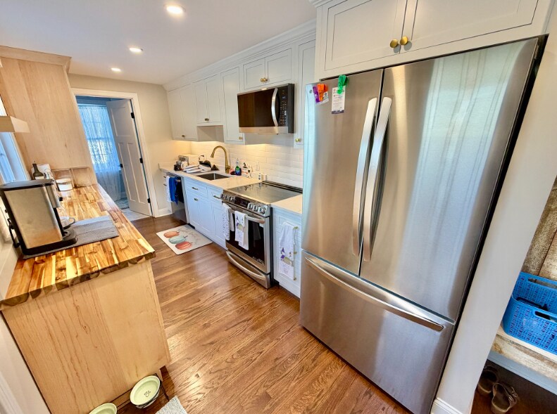Nestled in the charming community of Bedford, MA, this fully remodeled detached property offers an exquisite living experience, combining modern luxury with the warmth of a cozy family home. As you step inside this stunning two-bed, two-bath residence, you're greeted by lustrous hardwood floors that flow throughout the 1210 sqft of thoughtfully designed living space. The heart of this home is its modern kitchen, boasting high-efficiency appliances and fixtures that cater to both the casual cook and the aspiring chef. The adjacent living area, enriched with a cozy fireplace, provides a serene retreat for quiet evenings or a welcoming space for lively gatherings. Outdoor living is elevated with a spacious 500 sq/ft patio embraced by a tastefully fenced backyard, offering an idyllic setting for entertaining, or simply enjoying the tranquil outdoors.