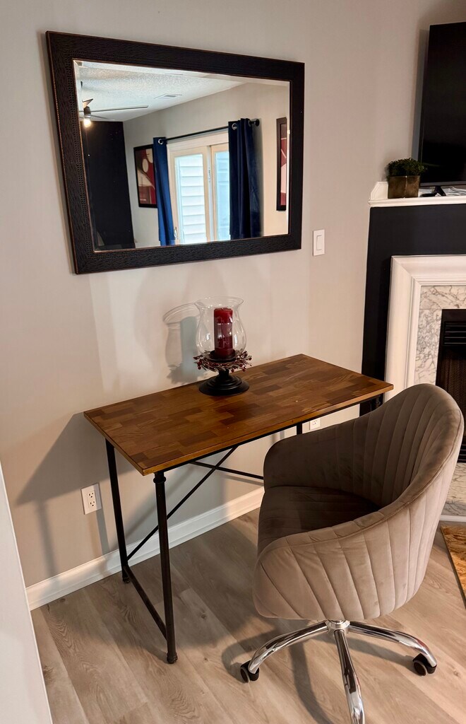 Townhome with private driveway, 3 bedroom, 2.5 bathrooms and living room with fireplace,