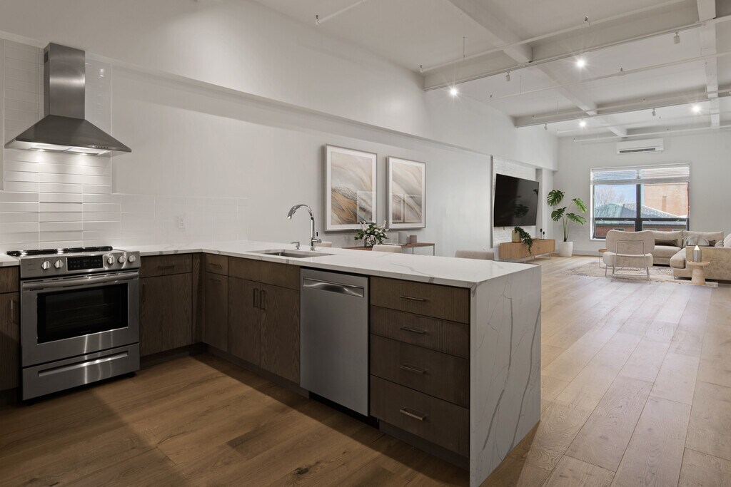 Newly constructed luxury apartments in the heart of downtown Portland! Extremely spacious with over 1,000 square feet of living space! These units offer soaring ceiling heights and luxury amenities. Your urban oasis awaits! The luxury lofts at 482 Congress offer ample square footage, high ceilings, full size in-unit laundry, modern kitchens with quartz countertops, custom tile baths, brand new HVAC units for efficient heating and cooling, Oak hardwood flooring, and more! The primary suite is complete with en-suite bathroom with radiant heat and walk-in closet. Building amenities include two entrances (Congress & Center St), two elevators, secured entry, and bicycle storage. On-site parking available for a fee. Pet friendly!
